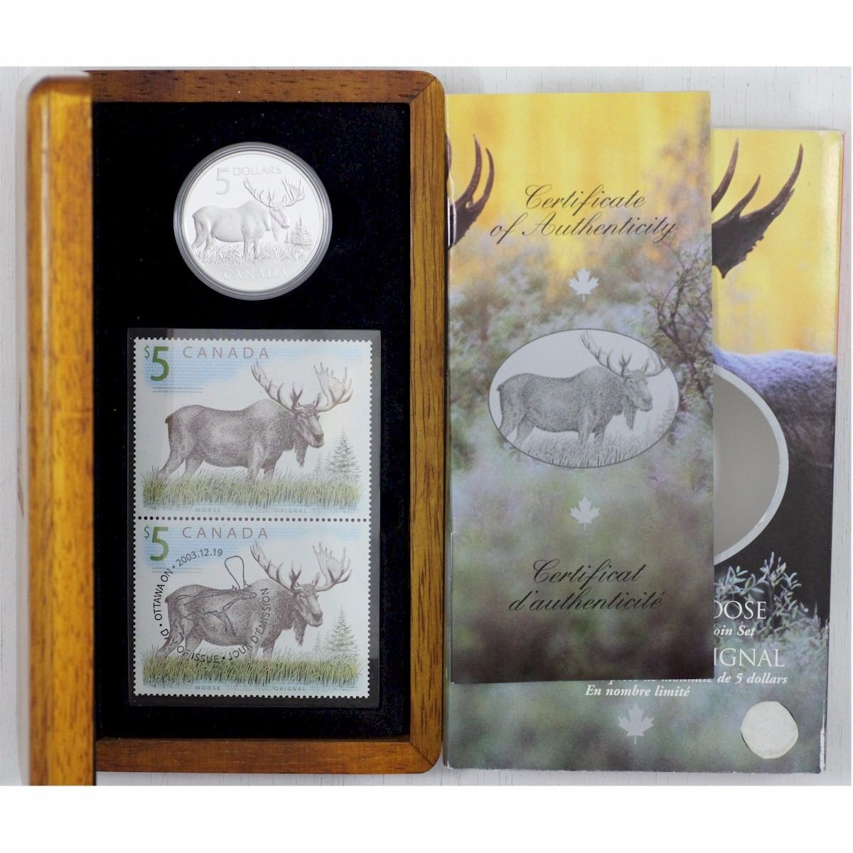 2004 Canada $5 silver Majestic Moose Limited Edition Coin and Stamp set.