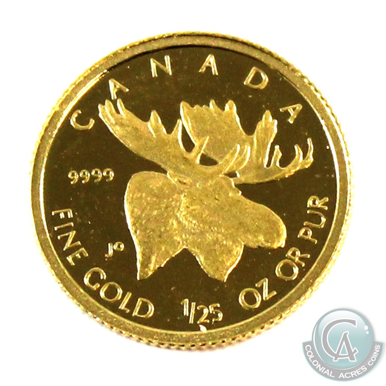 2004 Canada 50-cent Moose 1/25oz .9999 Fine Gold Coin. Comes loose in bag (coin is scratched). Tax Exempt