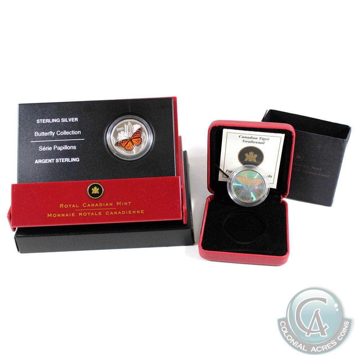 2004 Canada 50-cent Tiger Swallowtail (outer sleeve is taped) & 2005 50-cent Monarch Butterfly Collection Sterling Silver Coins. 2pcs