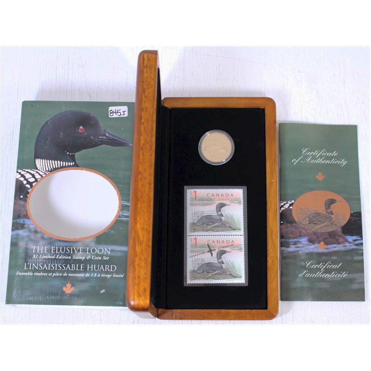 2004 Canada Elusive Loon Dollar Coin and Stamp Set (outer sleeve lightly scuffed).