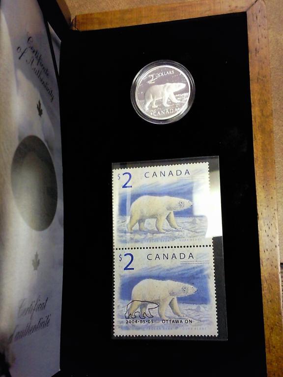 Contains: A Two Dollar Coin And Two $2 Stamps, In Wood Box, As Issued By The RCM