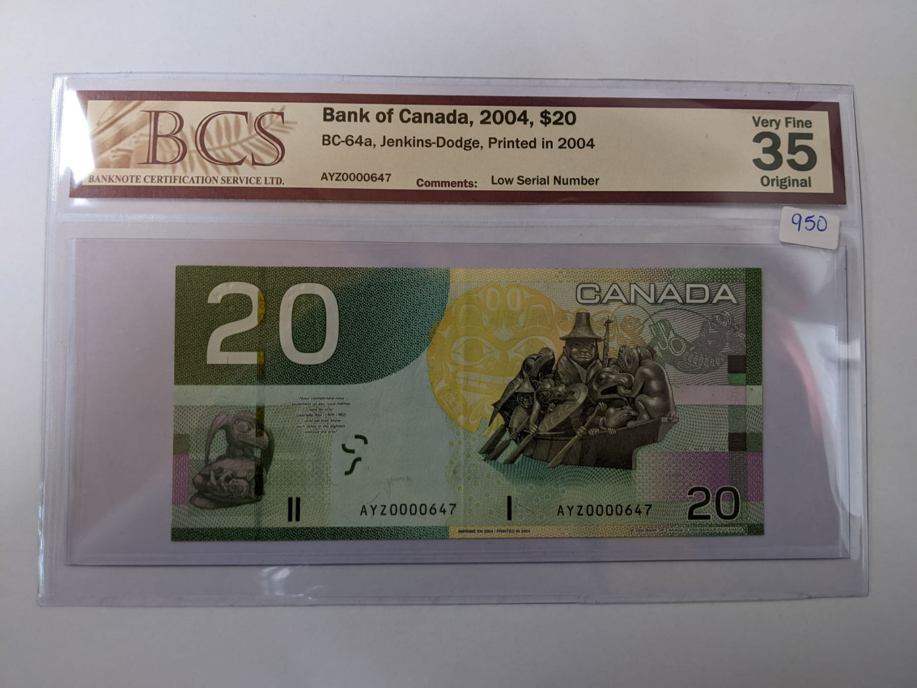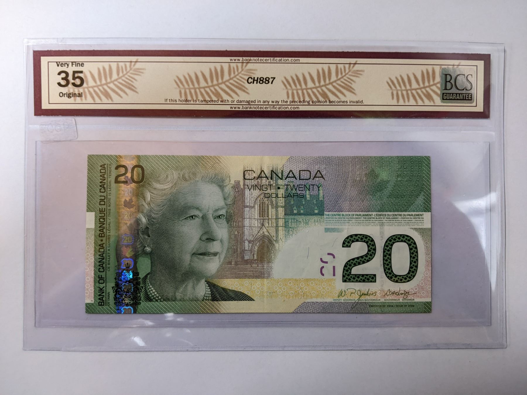 2004 Canadian $20 Bill - BCS Graded, Low Serial #, VF35