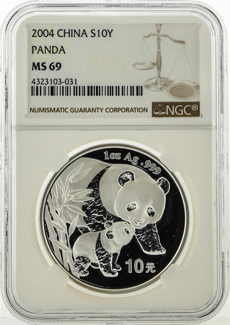 One 2004 China 10 Yuan Silver Panda NGC MS69. NGC Certified.