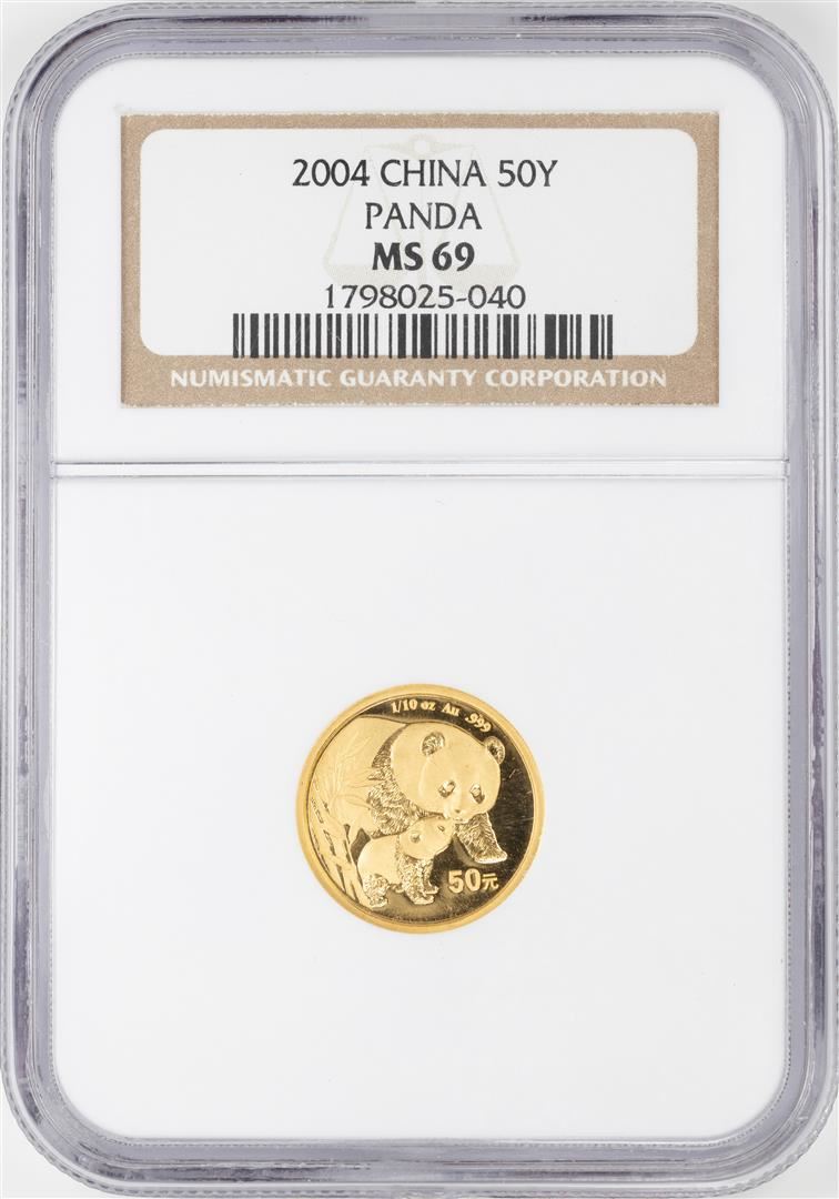 One 2004 China 50 Yuan Gold Panda Coin NGC MS69. NGC Certified.