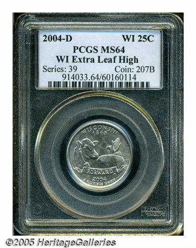 <B>2004-D<25C> Wisconsin Extra Leaf High MS64 PCGS.</B></I> Blushes of light tan patina visit this lustrous and sharply struck example. A few tiny ticks on Washington's face decides the grade.
