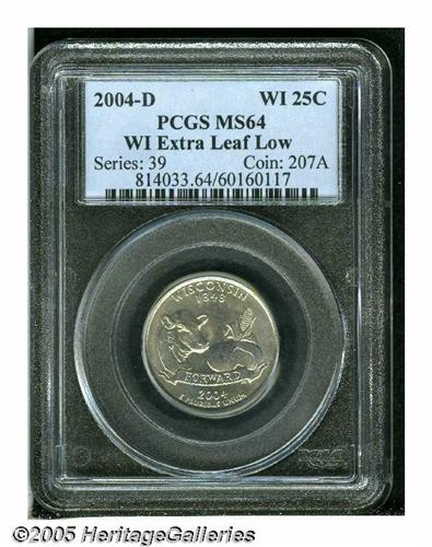 <B>2004-D<25C> Wisconsin Extra Leaf Low MS64 PCGS.</B></I> Light chestnut color graces this suitably struck and lustrous Gem. One of the two very scarce Extra Leaf varieties of this issue.