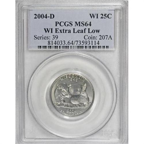 2004-D 25C Wisconsin Extra Leaf Low MS64 PCGS