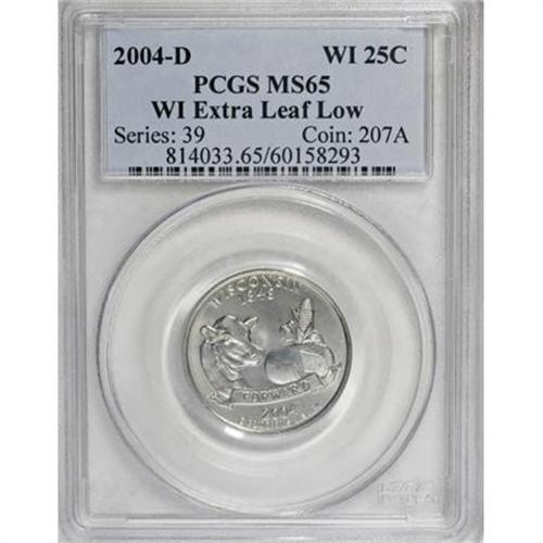 2004-D 25C Wisconsin Extra Leaf Low MS65 PCGS