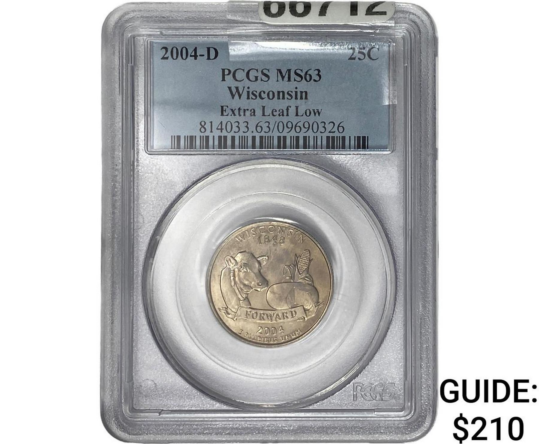 2004-D 25C Wisconsin Extra Leaf Low PCGS MS63