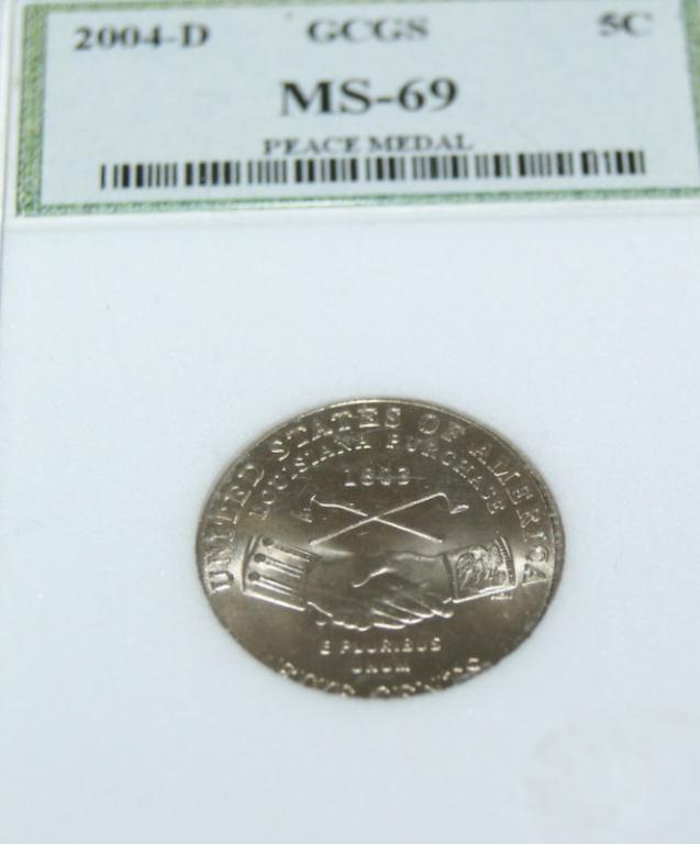 GCGS Graded MS-69 (Rare) 2004-D Five Cents Peace Medal