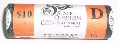 2004-D MINT $10.00 ROLL STATEHOOD QUARTERS "IOWA" *EXTREMELY RARE HARD TO FIND UNC STATE QUARTER MINT ROLL*! ***Coin, Currency & All Items Listed in this auction - Grades, Conditions and Values are not Safe Deposit Coins LLC Responsibilty. Grades, Condition and Values are determined by Consigner(s) & Buyers ONLY
