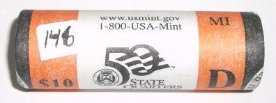 2004-D MINT $10.00 ROLL STATEHOOD QUARTERS "MICHIGAN" *EXTREMELY RARE HARD TO FIND UNC STATE QUARTER MINT ROLL*! ***Coin, Currency & All Items Listed in this auction - Grades, Conditions and Values are not Safe Deposit Coins LLC Responsibilty. Grades, Condition and Values are determined by Consigner(s) & Buyers ONLY