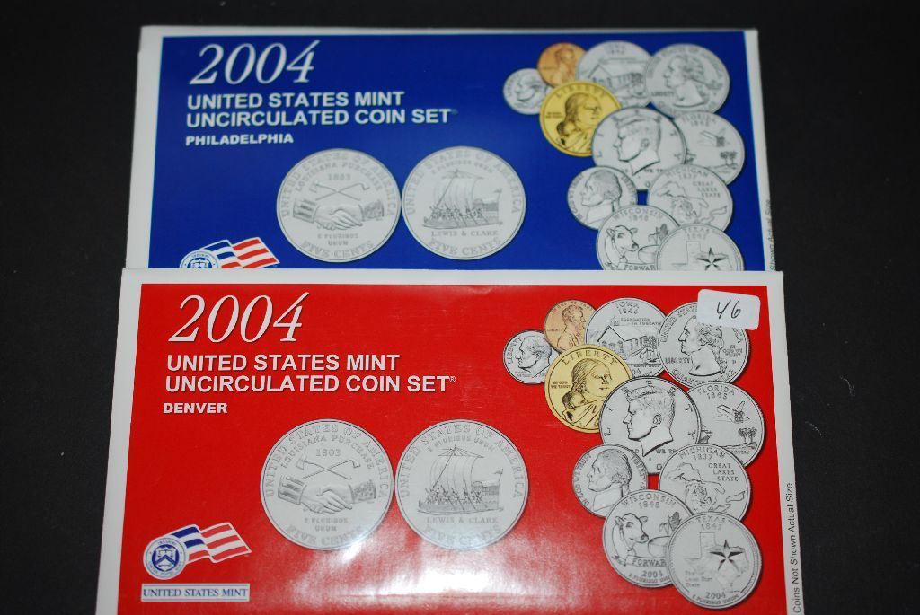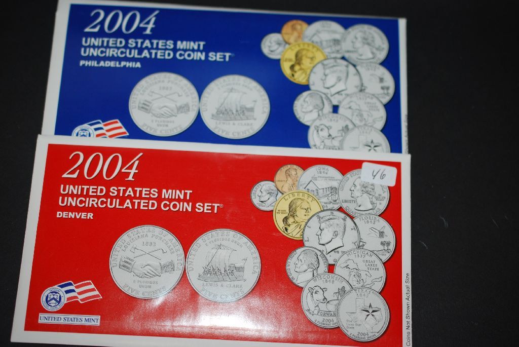 2004-D US Mint Coin Set To Include US Mint State Quarter Coin Set & 2004-P US Mint Coin Set To Include US Mint State Quarter Coin Set With COA Included; UNC; EST. $10-20