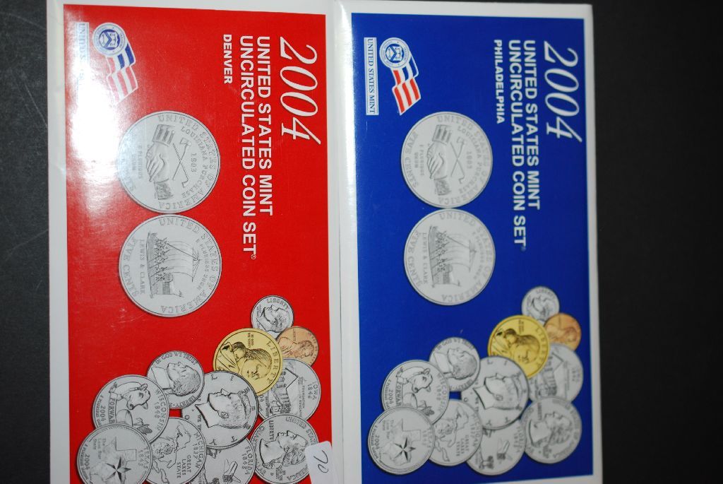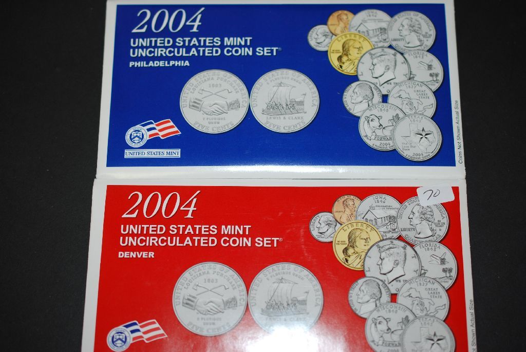 2004-D US Mint Coin Set To Include US Mint State Quarter Coin Set & 2004-P US Mint Coin Set To Include US Mint State Quarter Coin Set With COA Included; UNC; EST. $10-20