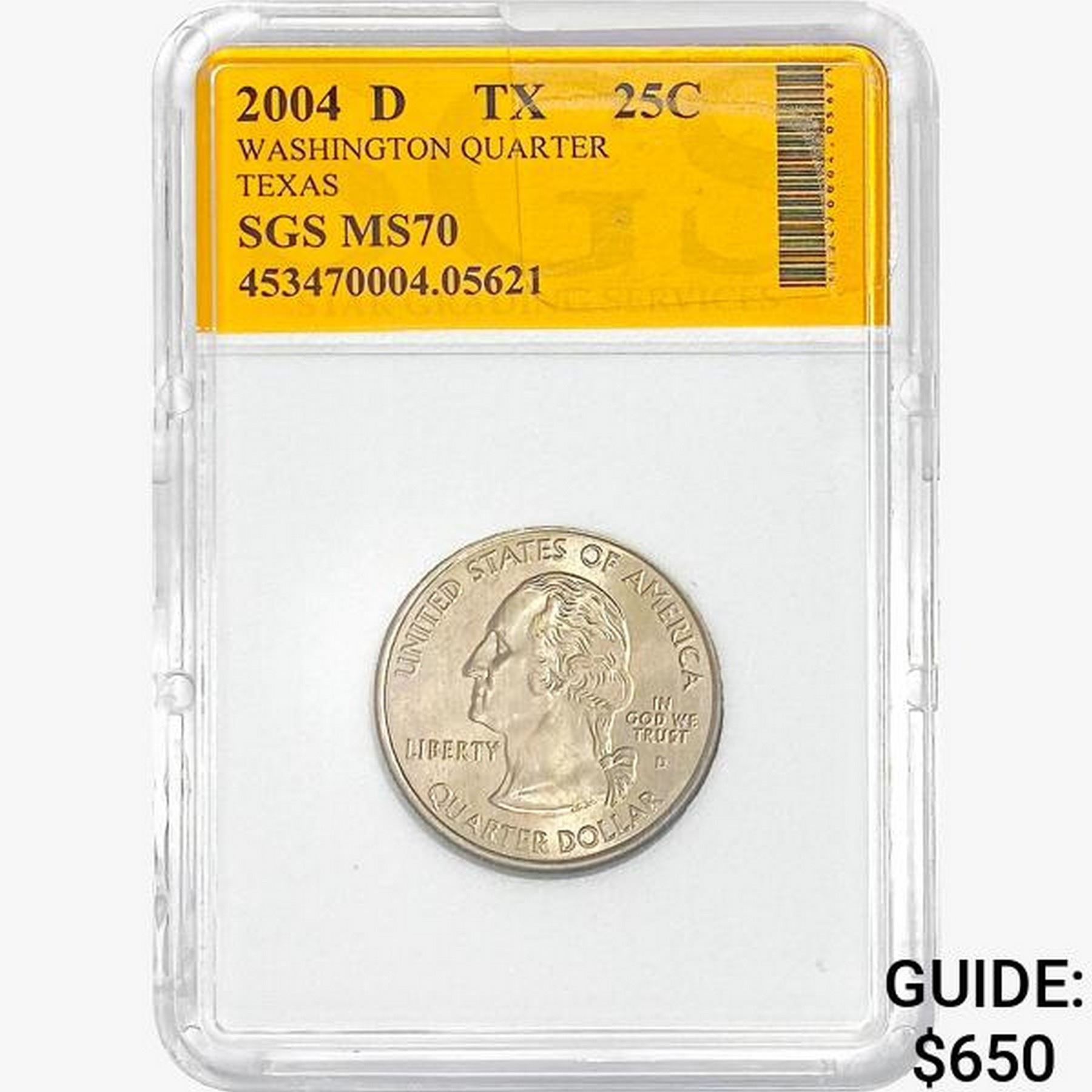 2004-D Washington Silver Quarter SGS MS70 Texas