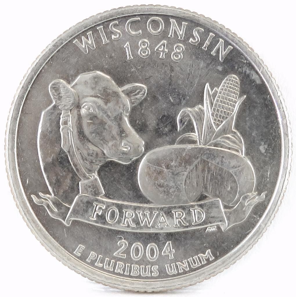 2004 D Washington - Wisconsin Statehood Quarter - Low Leaf Error.