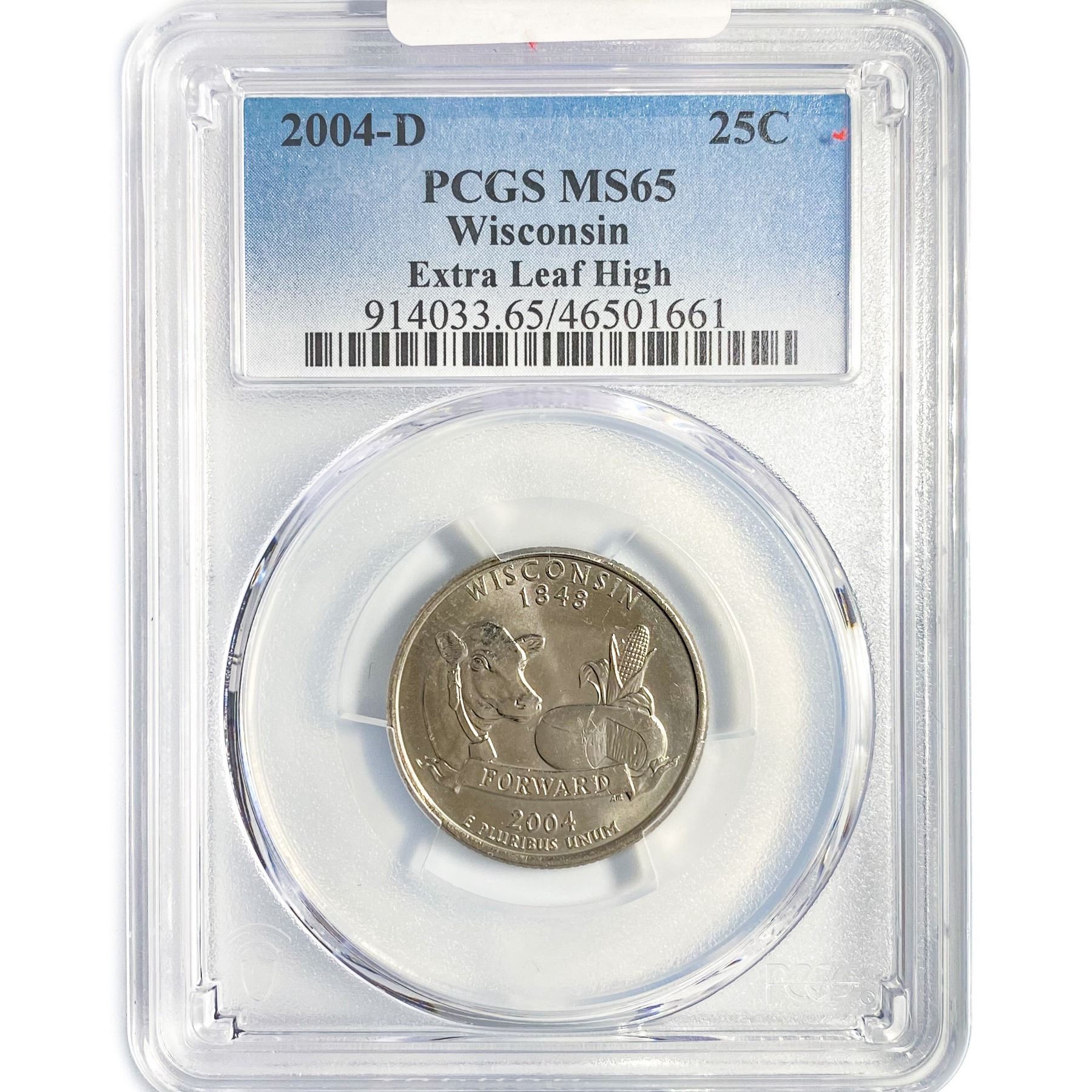 2004-D Wisconsin Quarter PCGS MS65 Xtra High Leaf