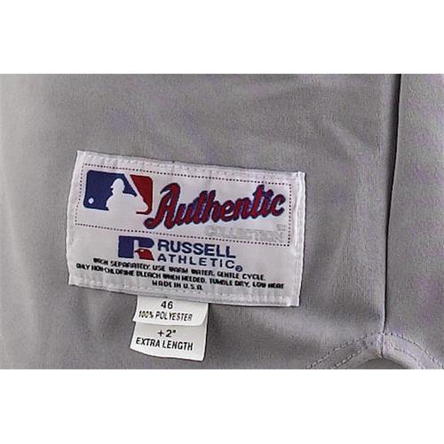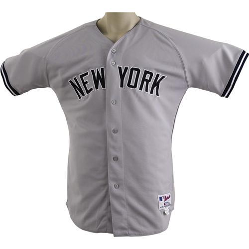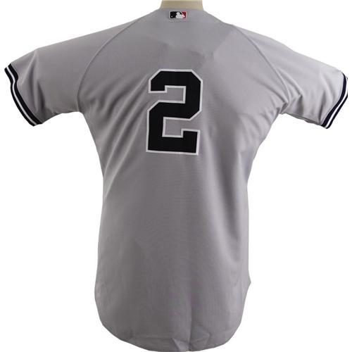 <B>2004 Derek Jeter Game Worn Jersey.</B></I> The most beloved Yankees star since Thurman Munson, and the first team captain since him as well. This road grey gamer packed the fans in every ballpark the star shortstop visited during his sixth All-Star season, with "New York" announced in navy and white tackle twill on the chest and number "2" in similar design on verso. Tail tagging is "Russell Athletic Authentic Collection," with flap tags affixed at bottom reading "46 100% Polyester" and "+2" Extra Length." Use is light to moderate, and certainly acceptable for a player of Jeter's stature. While Jeter's numbers alone should be sufficient to earn him an eventual home in Baseball's Hall of Fame, the tenacity of play seen in moments of brilliance so captivating that they are known simply as "The Flip" and "The Dive" proves that not every multi-millionaire athlete is by definition a prima donna. Derek Jeter is one of the last "old school" ballplayers, and for that he should be celebrated by those of us who collect baseball memorabilia out of nostalgia for the purity of the game. <I>LOA from Lou Lampson.</B></I> <BR><BR><B>Important notice:</B> Heritage usually auctions material at the rate of 200-250 lots per hour. On some occasions eBay Live bid software or the Internet may not be able to keep up with the pace of the auction. We recommend placing a realistic absentee bid now as insurance to avoid disappointment. Occasionally the auctioneer may eliminate or reject an eBay Live bid, and the auctioneer may also reopen a lot after the close of the eBay live bidding (usually because we missed an audience bid), and may reject your bid even if it shows you as the winning bidder. By bidding via eBay Live, you agree that Heritage may award the lot to another bidder at its sole discretion under the circumstances described above or any other reasonable circumstances. Since eBay bids are not shown to us until we open the lot on the floor, we treat those bids just like floor bids. In most cases the floor responds before the eBay bid is presented to us, due to Internet lag time, so for consistency we have made it a policy that floor bids are always considered first over tie eBay live bids. Also please note that all Heritage lots purchased through eBay Live carry a 22.5% Buyer's Premium. Please make sure you read the Terms and Conditions before you bid. This lot is being auctioned in conjunction with a live floor auction by Heritage Galleries & Auctioneers. All final auction and invoice information will be supplied by Heritage Galleries & Auctioneers, and all other information should be considered preliminary. Lot:19676 <BR><BR><B>Winning Notification and Billing:</B> After the FINAL session in this auction is complete, Heritage will send e-mail and snail mail invoices. This process normally takes several days. All final auction and invoice information will be supplied by Heritage Galleries & Auctioneers, and all other information should be considered preliminary. <BR><BR>This auction will be conducted on a live auction floor and over the Internet through eBay Live. If you choose to place an absentee bid, please take a moment to <font color='#0000ff'><u><a href='http://pages.ebay.com/liveauctions/help/before/laabsentee.html'>learn how eBay Live absentee bidding works</a></u></font><font color='#000000'>