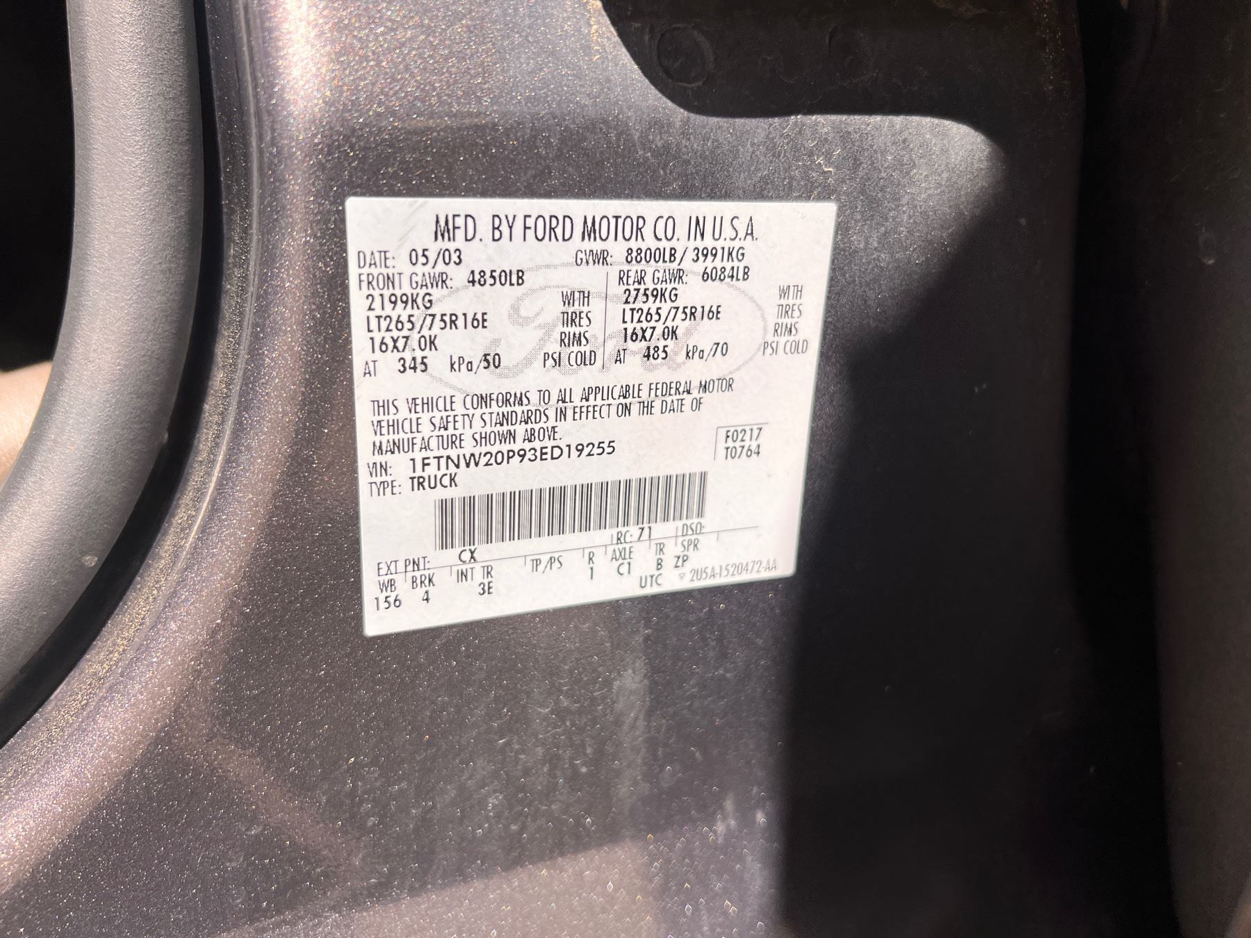VIN: 1FTNW20P9ED19255