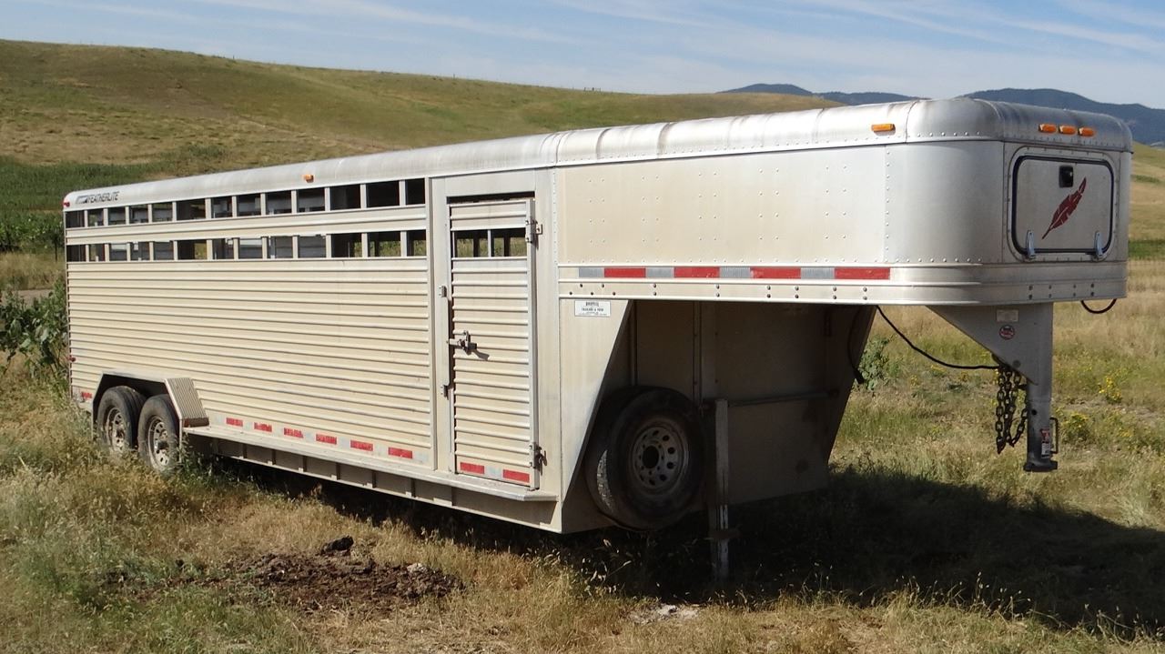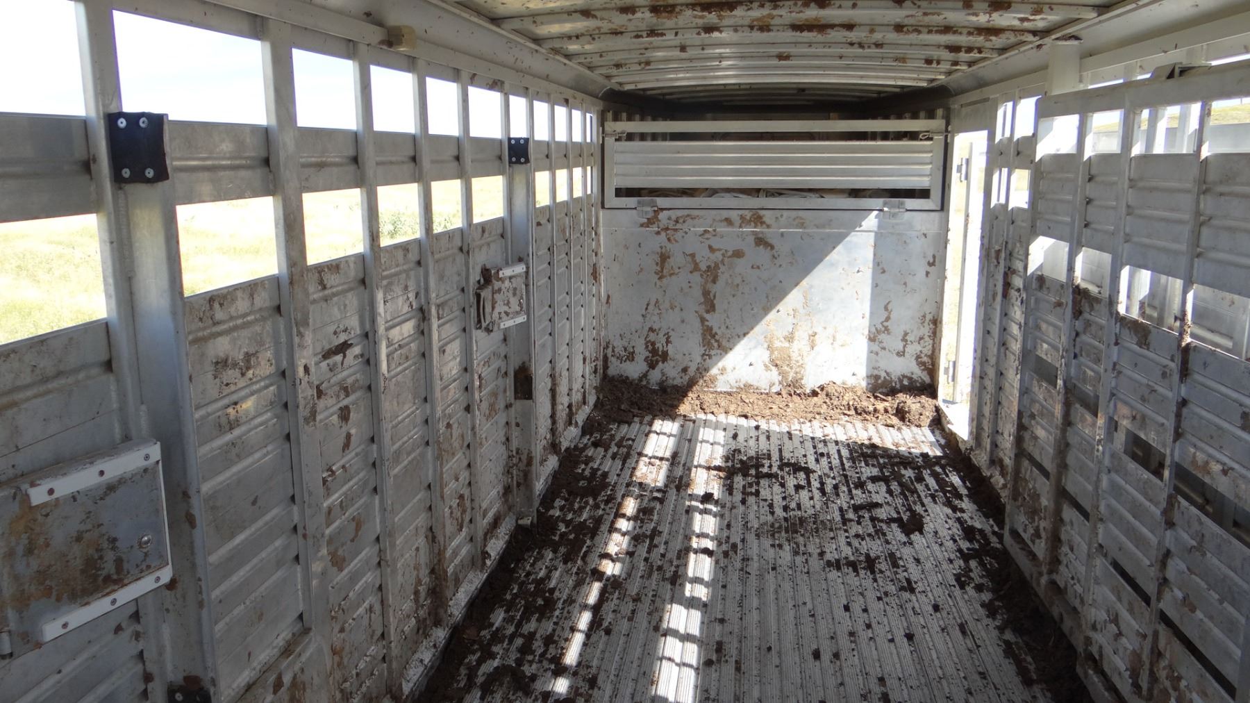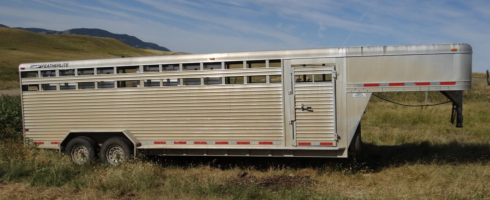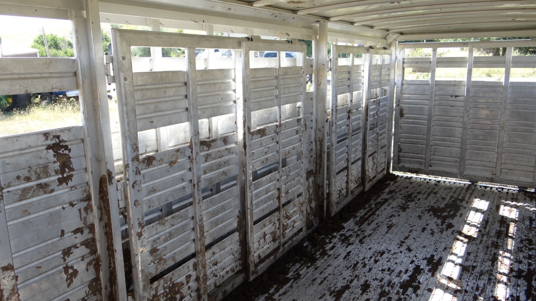 24’ x 7’w x 78”h, alum w/ alum floor, 2 center gates w/ sliders, rear slider, near new tires. Excellent condition!
