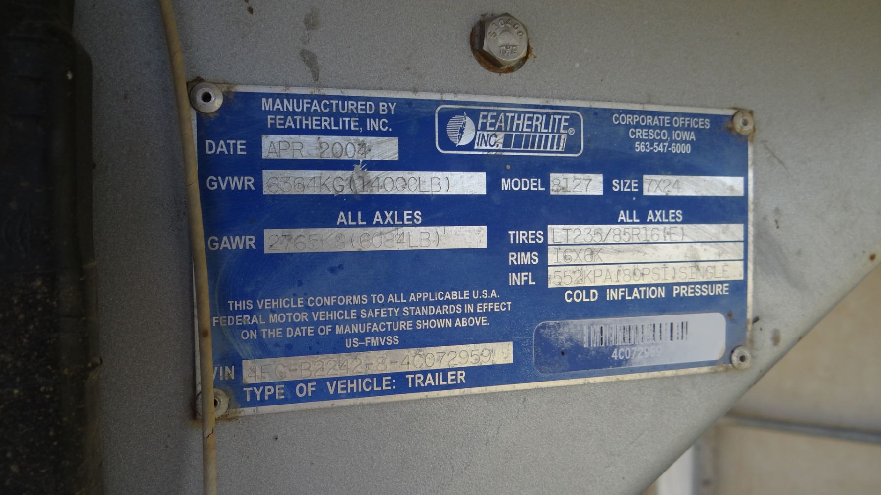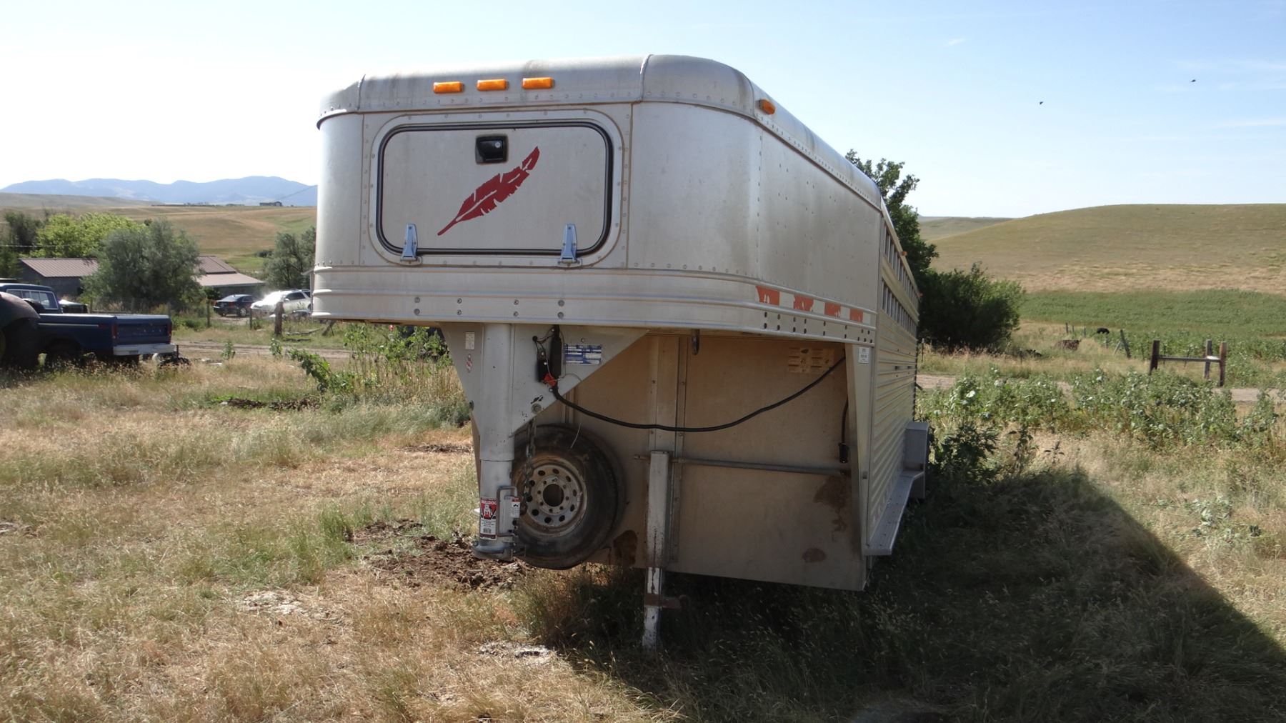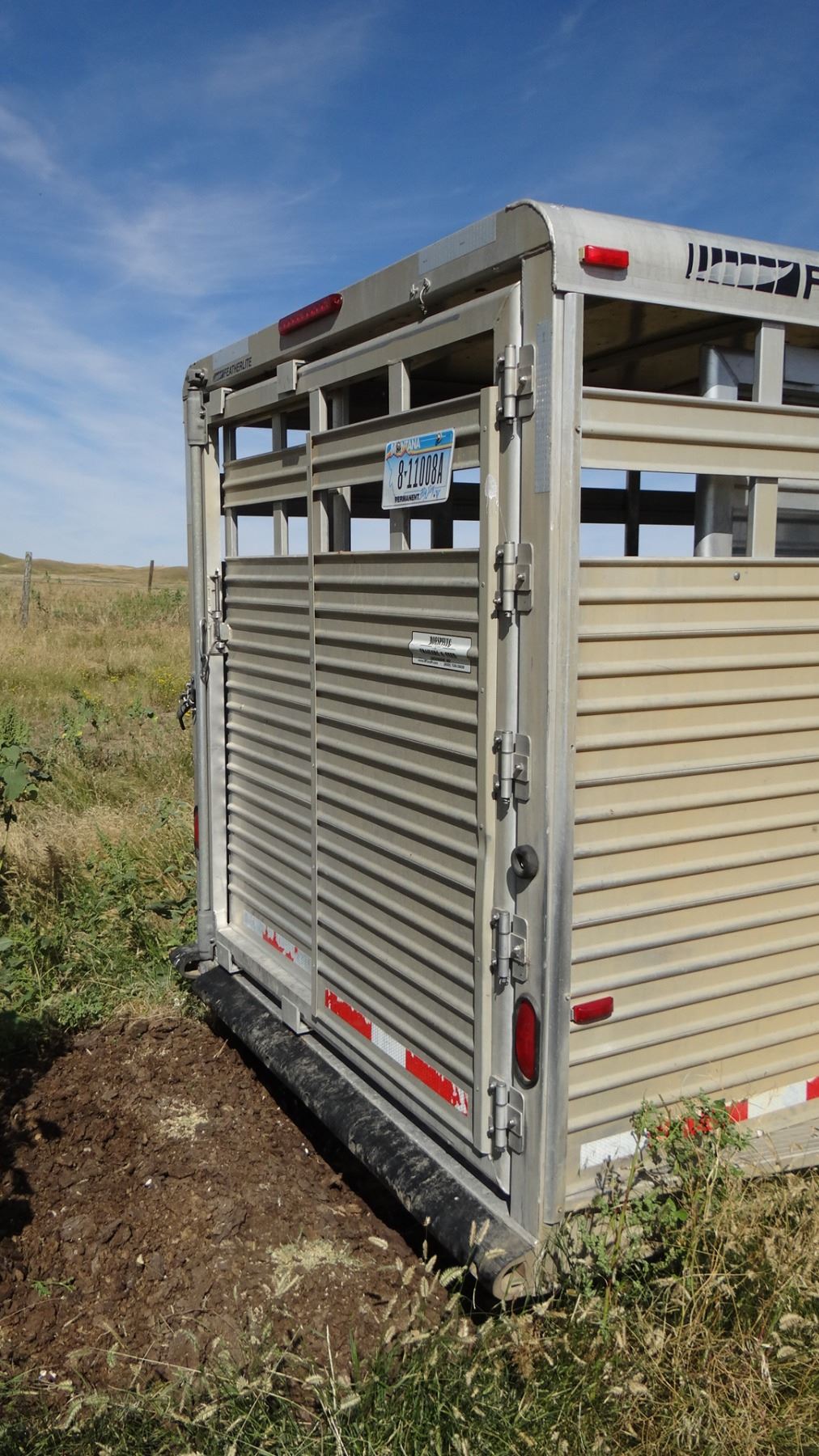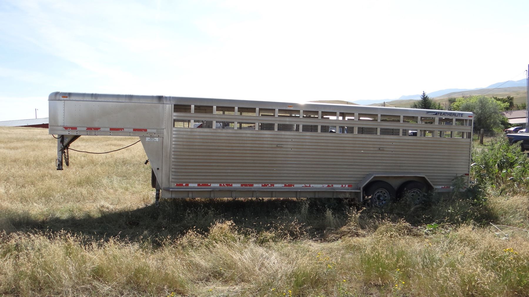 24’ x 7’w x 78”h, alum w/ alum floor, 2 center gates w/ sliders, rear slider, near new tires. Excellent condition!