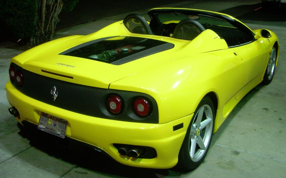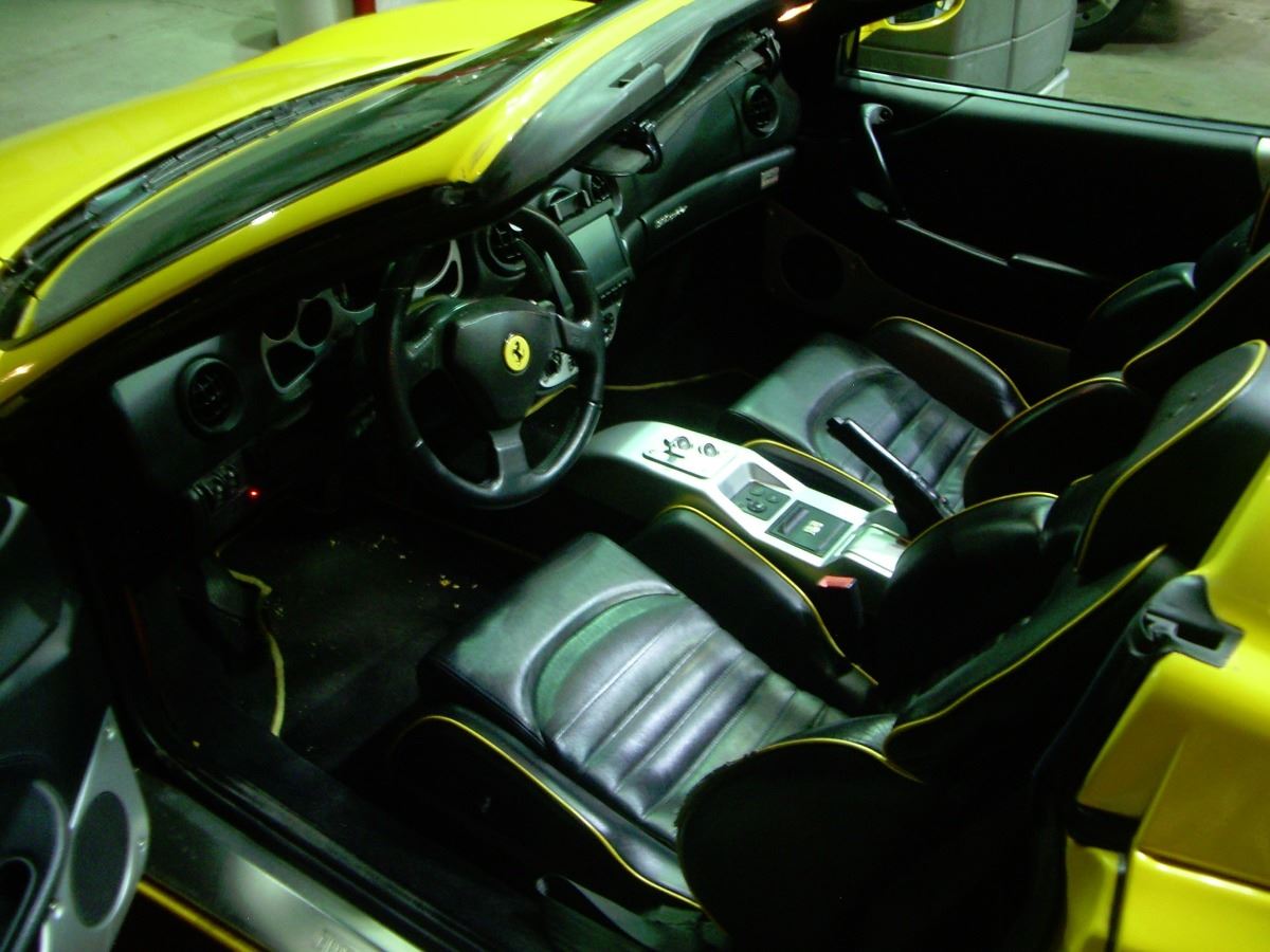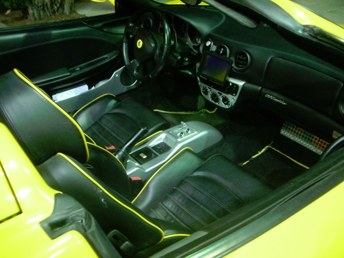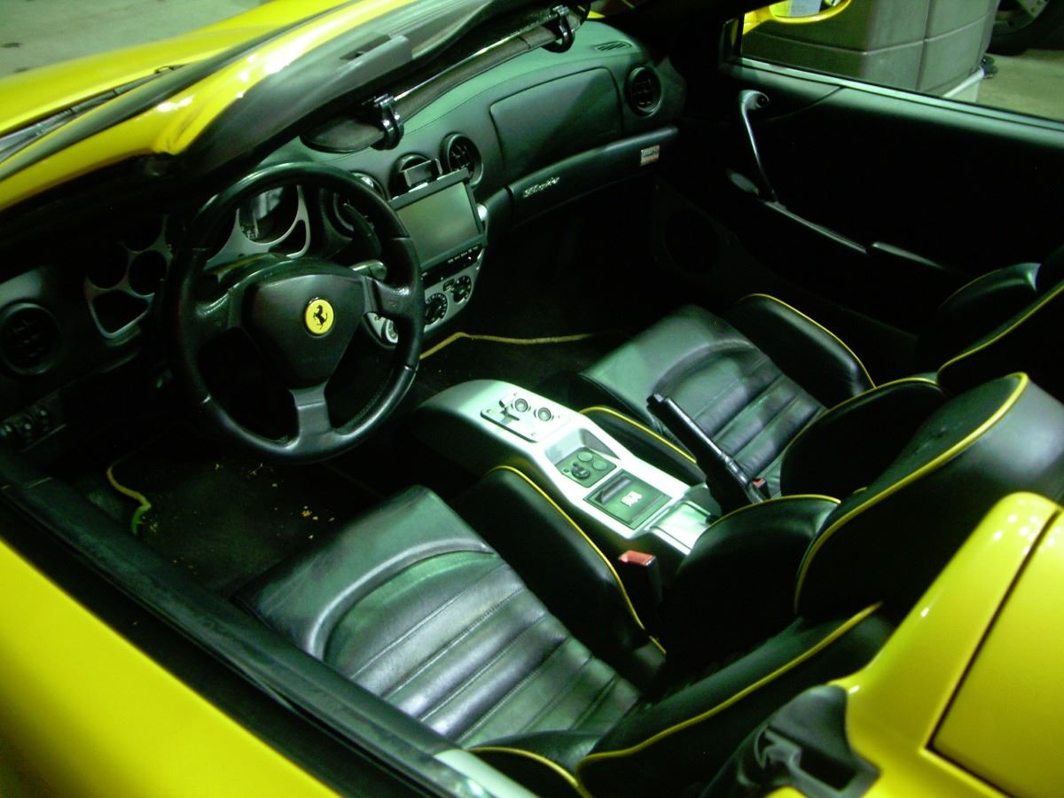 2004 Ferrari 360 F1 Spider in Ferrari Fly Yellow with a Black Leather interior with yellow piping. Only 29,000 miles. Loaded with the F1 Transmission, Scuderia Ferrari Shields, Yellow Painted Calipers, Power Seats, Rear Challenge Grill, HI-Fi Sound, Black Roll Bars, Ferrari Racing Exhaust, Carbon Fiber Kit for Engine Compartment, Spare Wheel Kit and protected with a 3M style Clear Bra. This is a rebuilt salvage. It was in an accident with damage to the front and rear, however the car was completely rebuilt. A used engine was installed when rebuilt. Belts and hoses seviced in Jan 2015. Southern California car. All service records. SpecificationsJewelry InformationBrand, Seller, or Collection Name: FerrariCategory: AutomobileCategory Style: AutomobilesNew/Used: Pre-OwnedMetal: N/ATotal Weight: N/AInternal ID:160DisclaimersThe descriptions listed should not be construed as an appraisal. The detail is provided as a guideline for color, clarity, weights and measurements to the best of our ability. We welcome inspections. WE SHIP WORLDWIDE!This item has a Reserve established by our consigner.