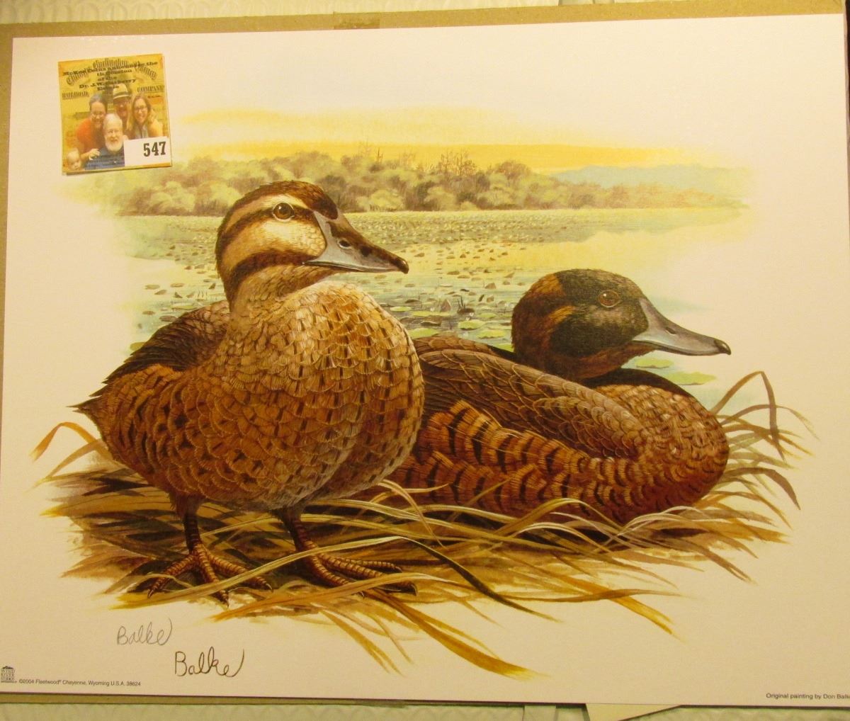 2004 Fleetwood hand autographed print of a pair of Ducks (I thought I was good, but I am not even going to try to guess what kind) by Don Balke, 10.5" x 13.25".