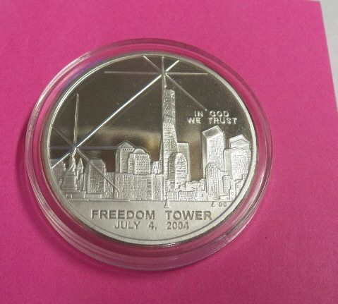 Freedom Tower Dollar 1oz Silver Tower' Silver Dollar has been struck with 100 Mil .999 Pure Silver recovered from the ruins of Ground Zero. This flawless coin comes encapsulated in a hard plastic coin holder in