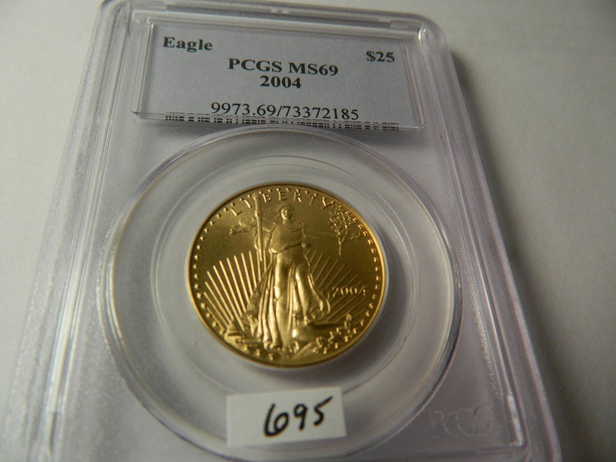 2004 Gold U.S. $25 Eagle, PCGS MS69, 1/2 ounce Fine Gold