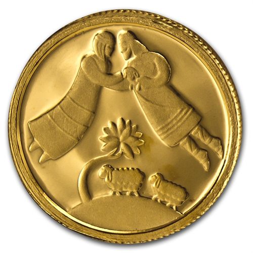 2004 Israel Jacob & Rachel Biblical Art Smallest Go **|**|** Year: 2004 ; Mint Mark: Proof ; Grade: n (Mem) ; Denomination: NIS 1 ; MSRP: $400