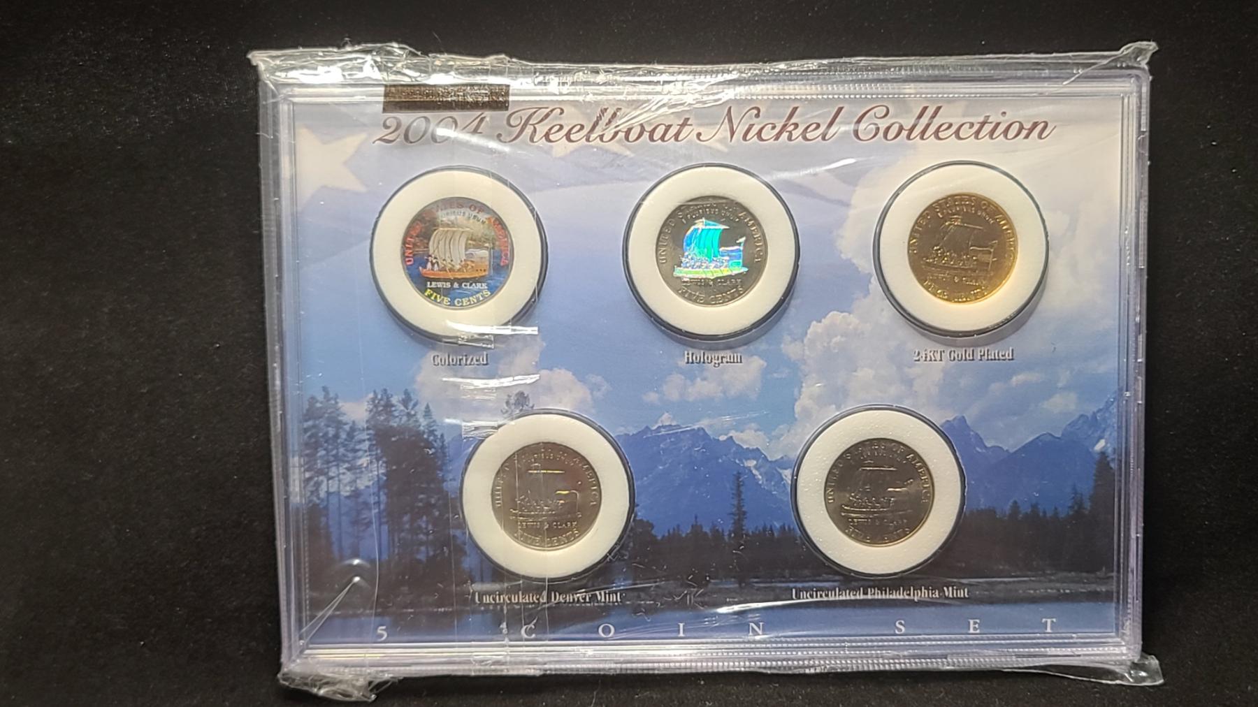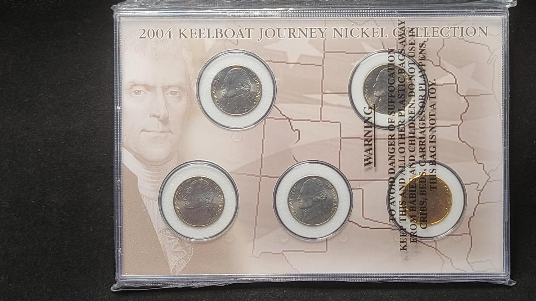 2004 Keelboat Nickel Collection - 5 Coin Set in Display Slab - Face Value: $0.25