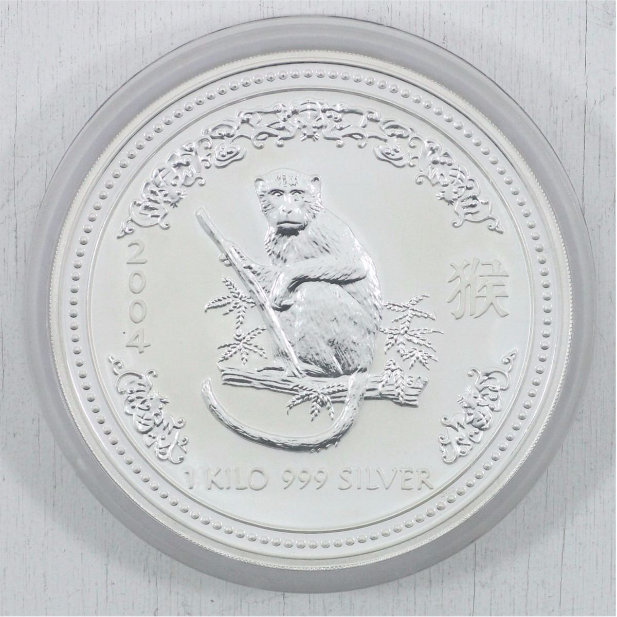 2004 Kilo (32.15oz.) .999 Fine Silver Australian Year of the Monkey Silver Coin (TAX Exempt). Capsule is lightly scratched Buyers Premium will be added on all items as per our terms of sale. We accept Paypal, Credit Card, E-Transfer Payments, Cheque or Money Orders (there is an additional 3% fee for using Paypal or Credit Card). All invoices will be emailed immediately following the auction, please contact us if you would like to pay by credit card or receive a new revised lower total for mailing in payment or sending an e-transfer (3% discount). All Items Are Sold "AS IS", no returns