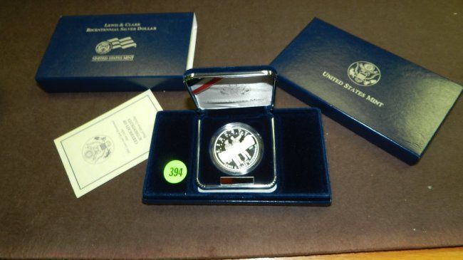 2004 LEWIS AND CLARK BICENTENNIAL COMMEMORATIVE SILVER 1.00 DOLLAR w/BOX & COA