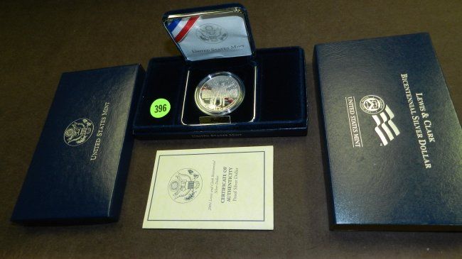 2004 LEWIS AND CLARK BICENTENNIAL COMMEMORATIVE SILVER 1.00 DOLLAR w/BOX & COA