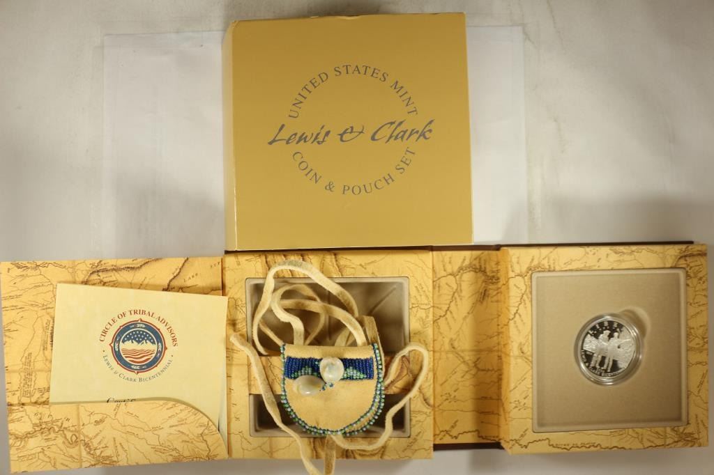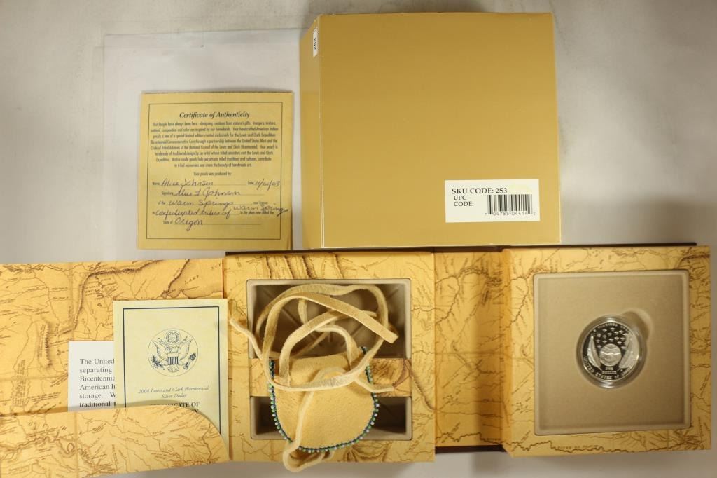 EDITION CONTAINS: PROOF SILVER DOLLAR, AND INDIAN POUCH MADE BY ALICE JOHNSON OF THE CONFEDERATED TRIBES OF WARM SPRINGS, ORIGINAL US MINT PACKAGING