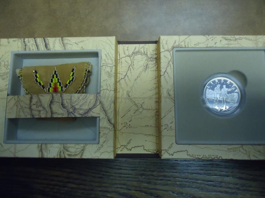 CONTAINS: PROOF SILVER DOLLAR AND AMERICAN INDIAN POUCH PRODUCED BY A MEMBER OF THE SALISH TRIBE, ORIGINAL US MINT PACKAGING