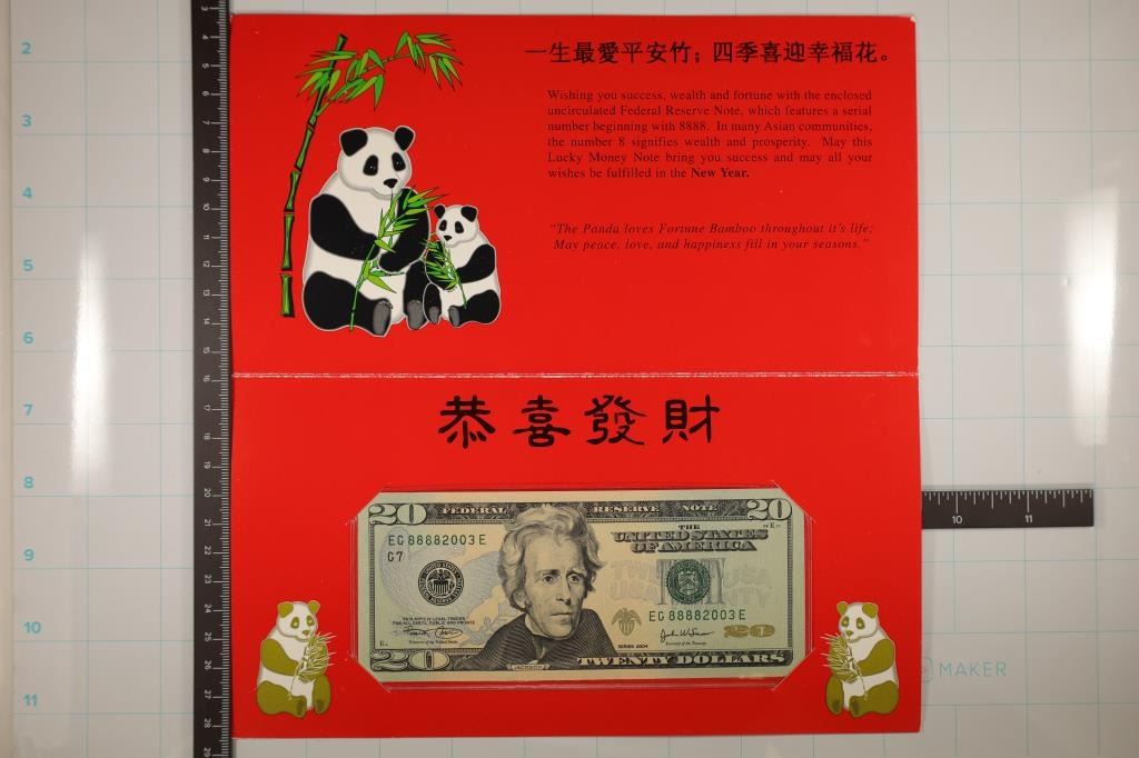 FRN, CRISP UNC, SERIAL NUMBER STARTS WITH 8888, ORIGINAL BEP PACKAGING