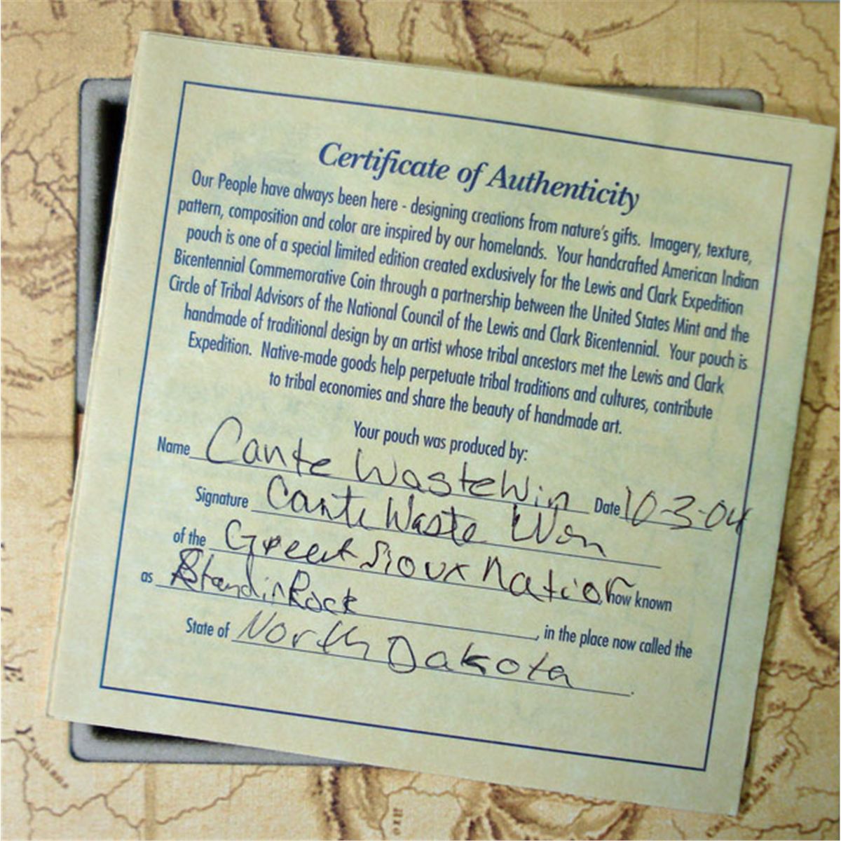 Set includes: silver dollar and a one of a kind Native American pouch. Pouch made Cante Waste Win of the Great Sioux Nation now Known as The Standing Rock Nation of North Dakota