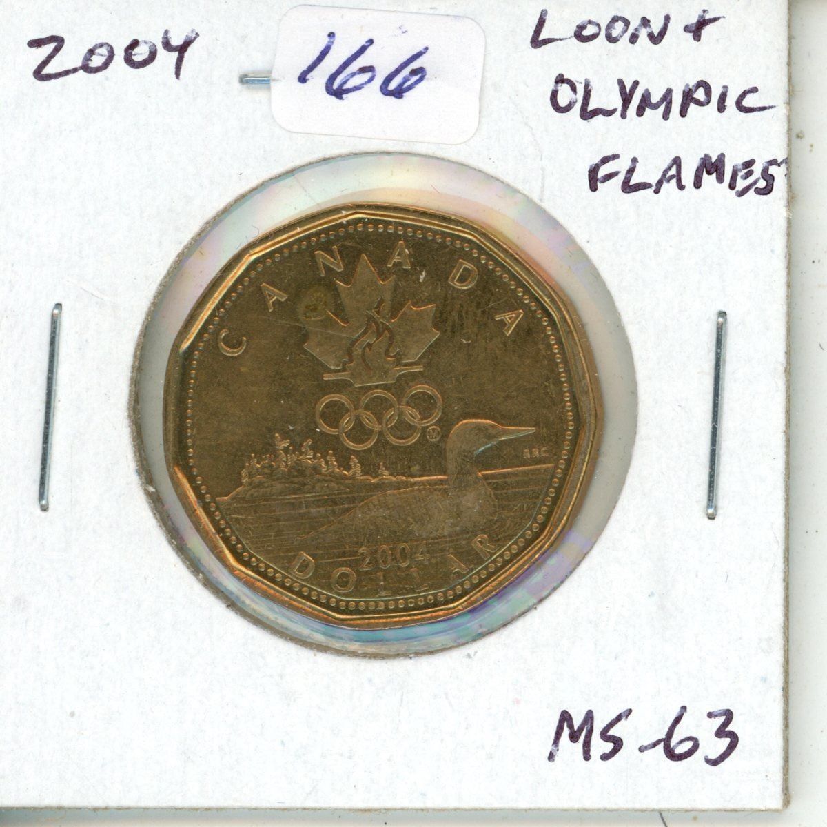 2004 Loon & Olympic Flames Loonie Dollar. MS-63 from an original Royal Canadian Mint roll.