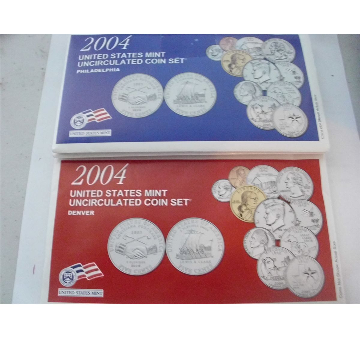 2004 MINT SET, P&D PLUS QUARTERS, 22 COINS TOTAL