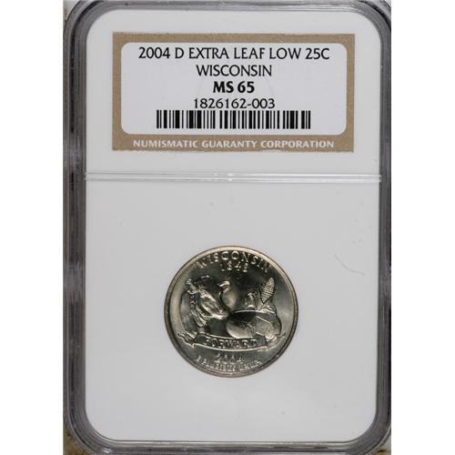 <B>2004 25C --Extra Leaf Low--MS65 NGC.</B></I> NGC Census: (0/0). PCGS Population (0/0). (#814033)<BR><BR><b>Shipping:</b> Coins & Currency (<a target="_blank" href="http://www.heritageauctions.com/common/shipping.php">view shipping information</a>)