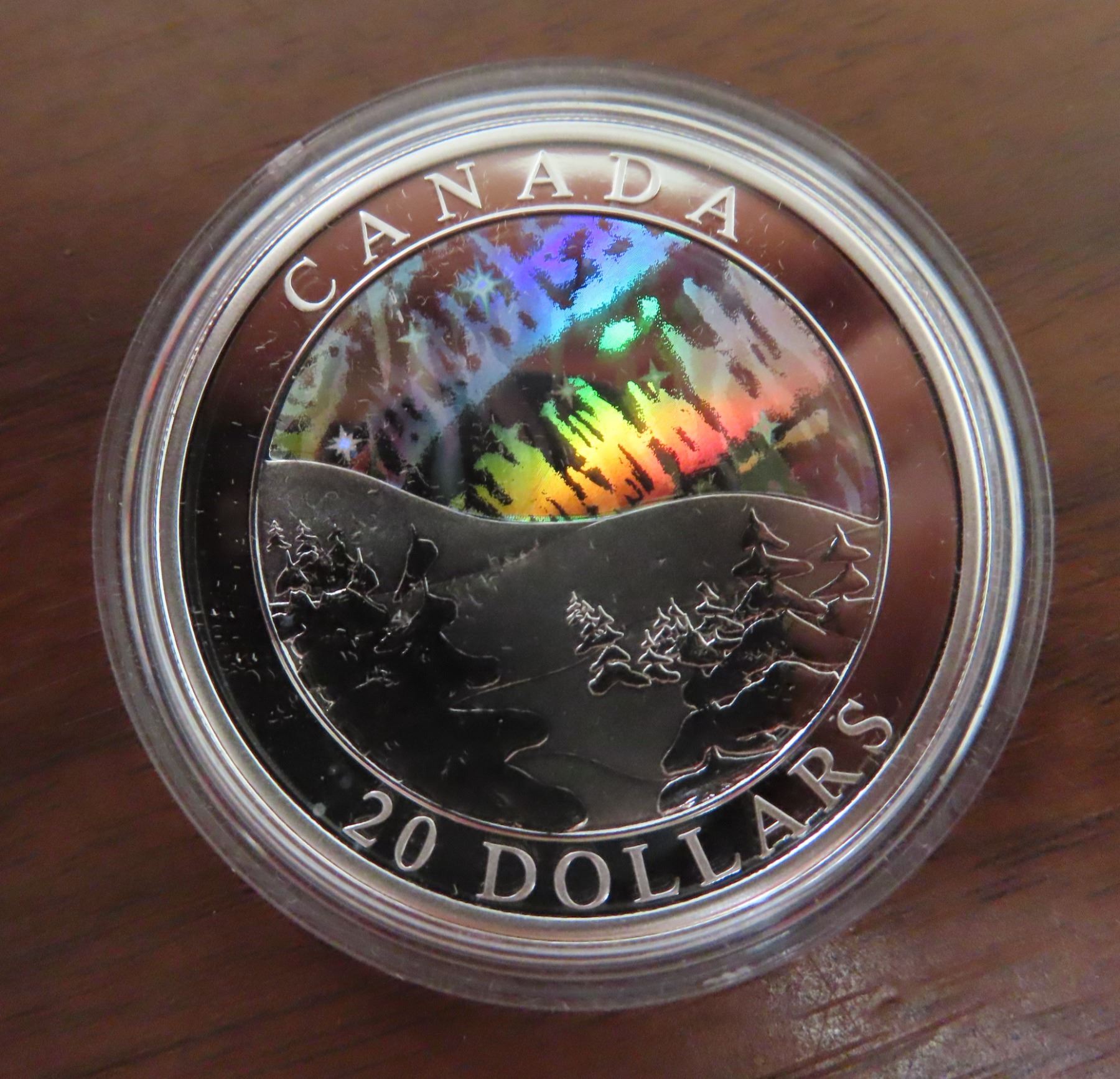 2004 Northern Lights $20. Hologram. 99.99% pure Silver. Proof with Ultra Heavy Cameo. Housed in its original Royal Canadian Mint case & box of issue.