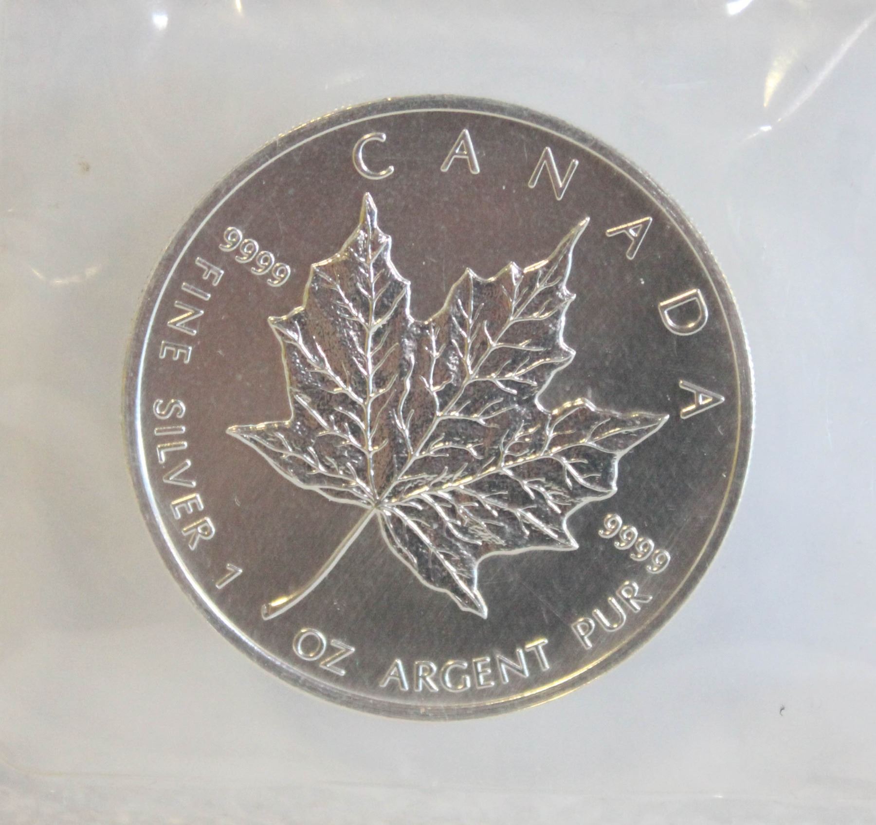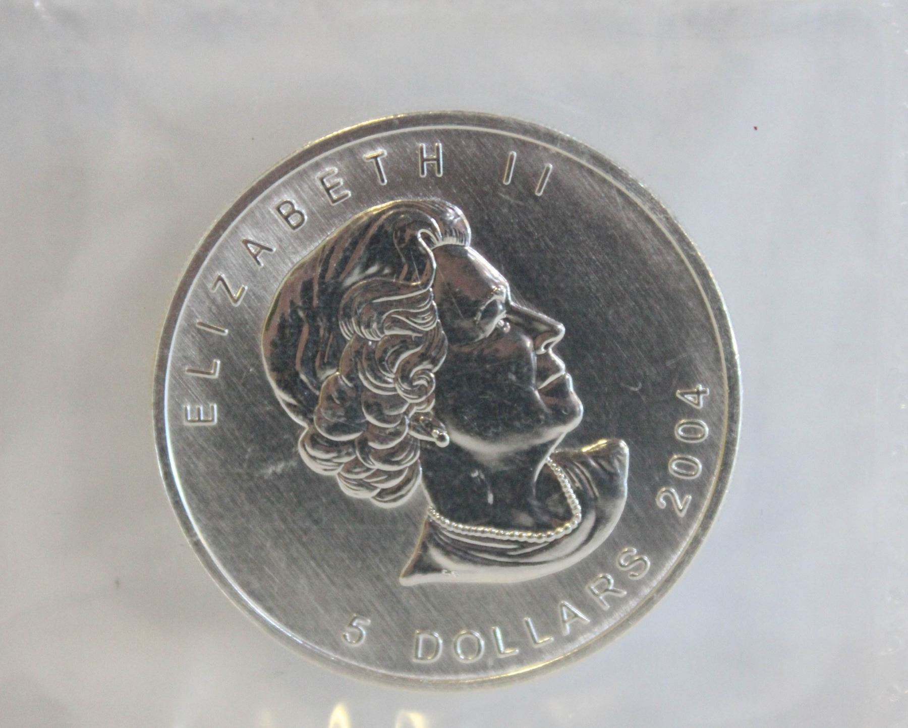 2004 ONE OZ SILVER $5.00 MAPLE LEAF COIN