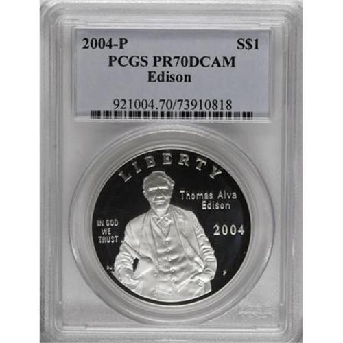 2004-P $1 Edison Silver Dollar Deep Cameo PR70 PCGS