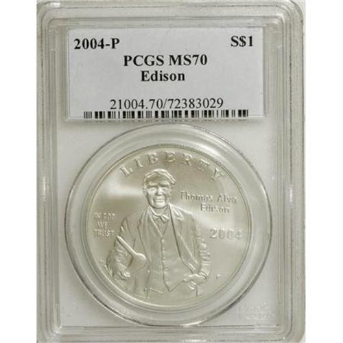 2004-P $1 Edison Silver Dollar MS70 PCGS