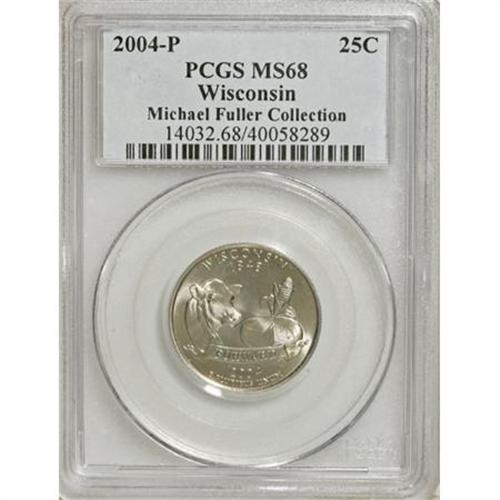 <B>2004-P 25C Wisconsin MS68 PCGS.</B></I> Michael Fuller Collection. PCGS Population (11/0). NGC Census: (0/0). (#14032)<BR><BR><b>Shipping:</b> Coins & Currency (<a target="_blank" href="http://www.heritageauctions.com/common/shipping.php">view shipping information</a>)