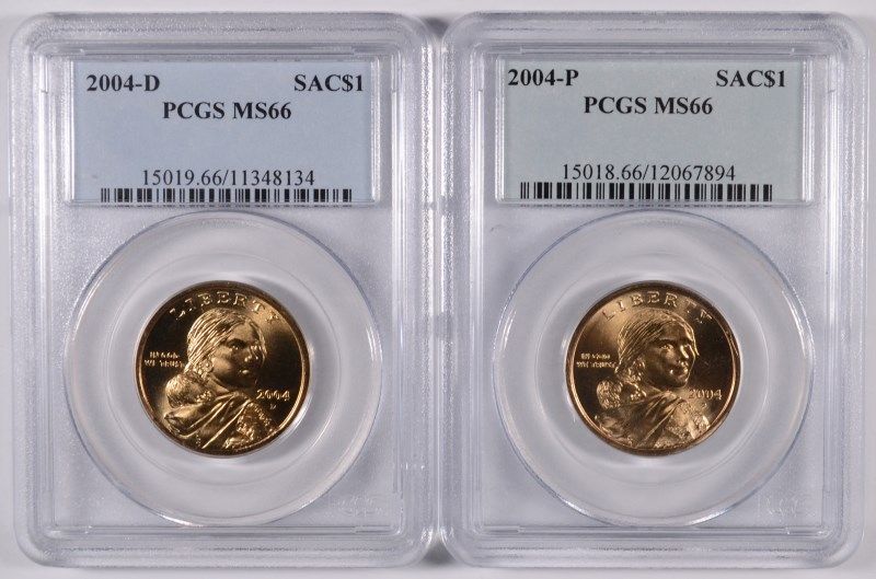 2004-P, D SACAGAWEA DOLLARS BOTH PCGS MS-66