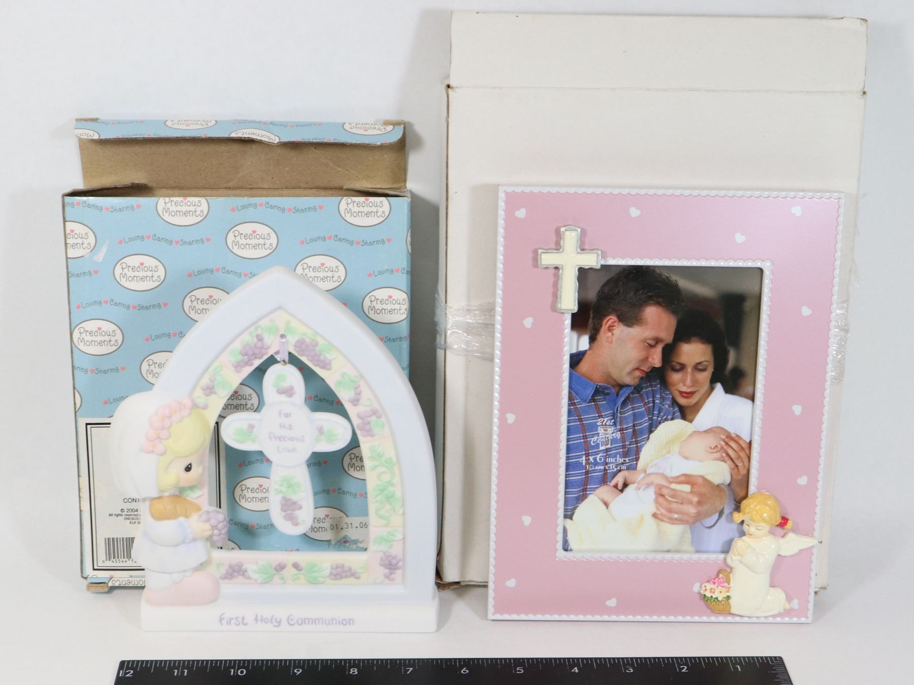 GIRL/GRAPES PLAQUE 120214 SOLD WITH PINK BOARDER HEART DESIGN FRAME WITH CROSS AND PRAYING ANGEL. PHOTO SIZE. 4X6 (10 CMX15CM)