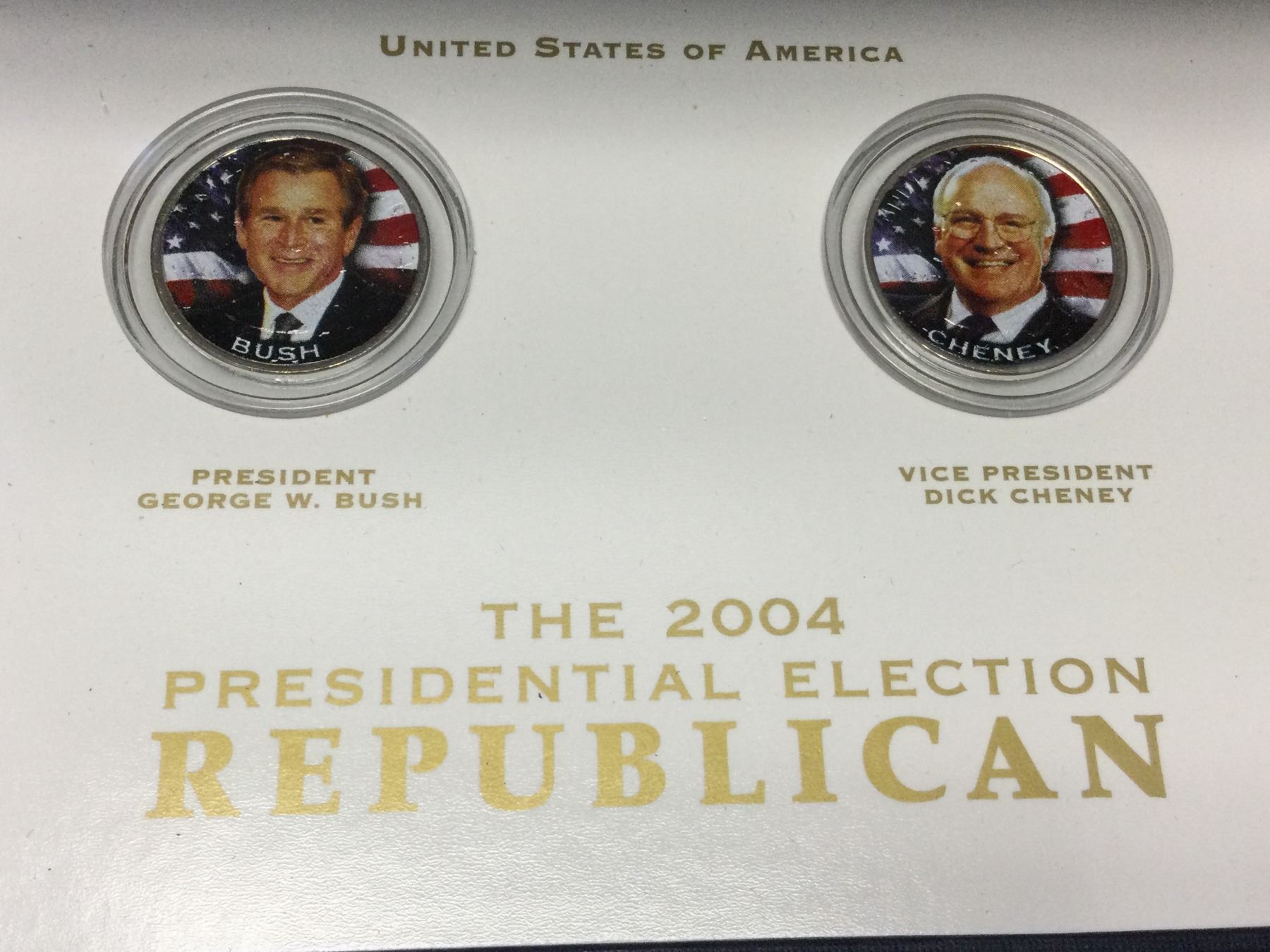You are bidding on a set of 2 2004 Presidential Republican Coins featuring President George Bush and VP Dick Cheney