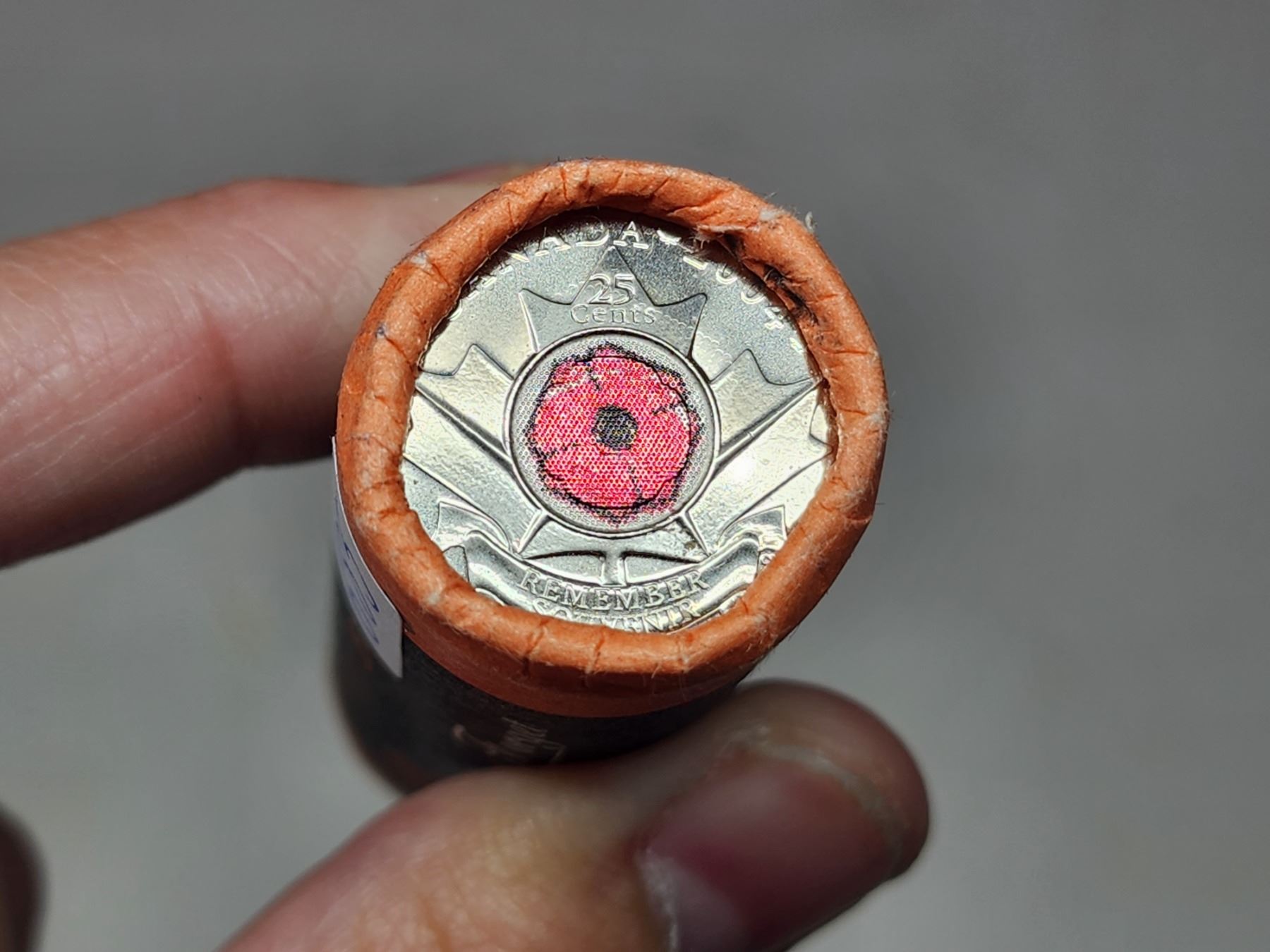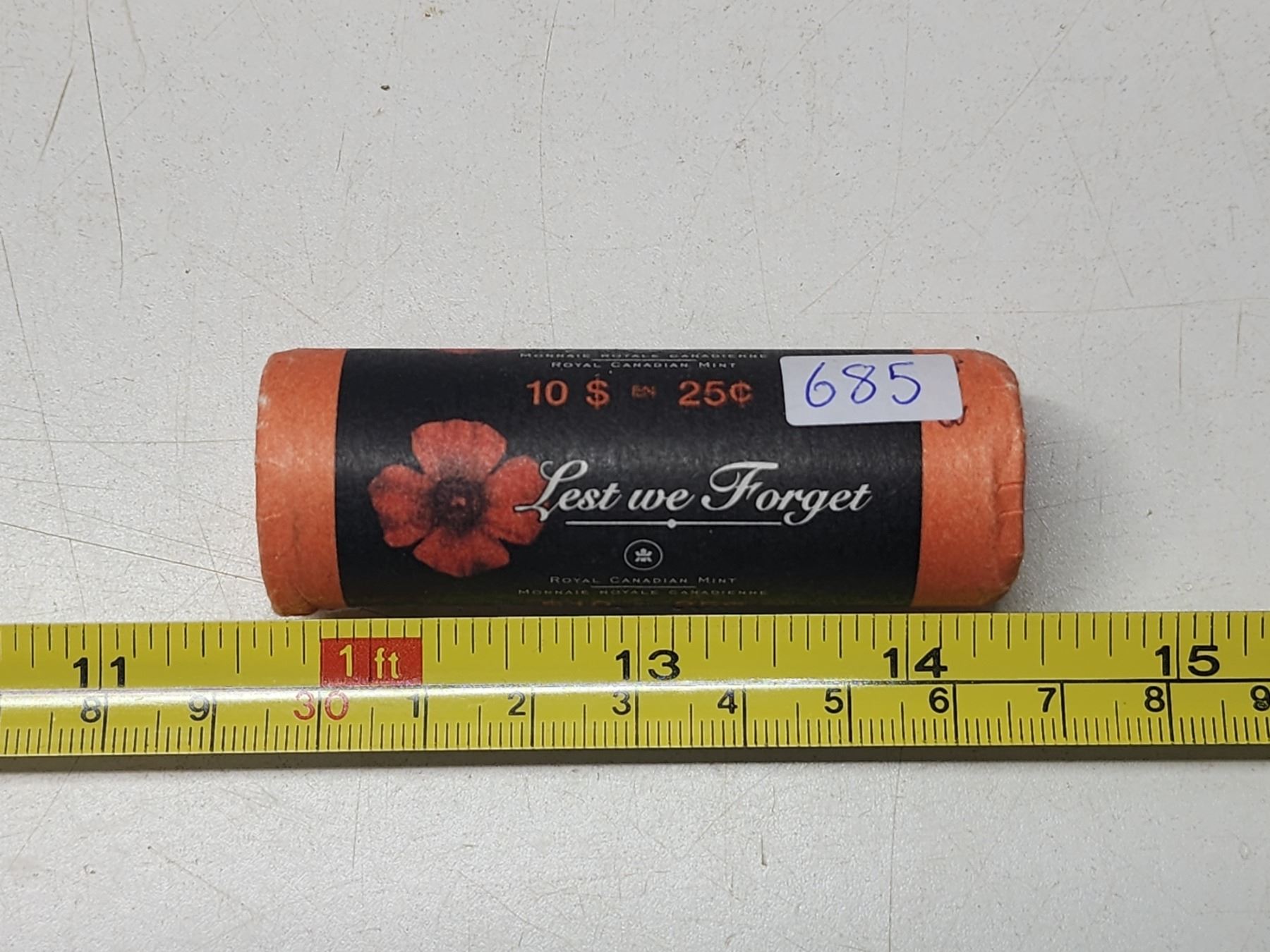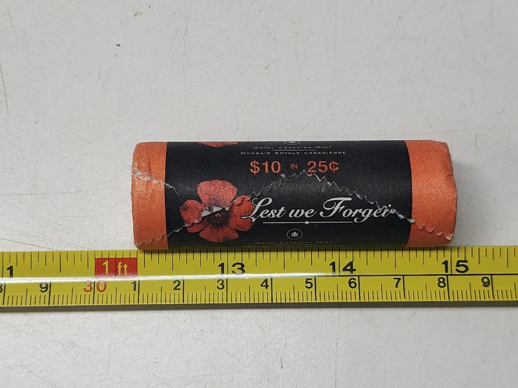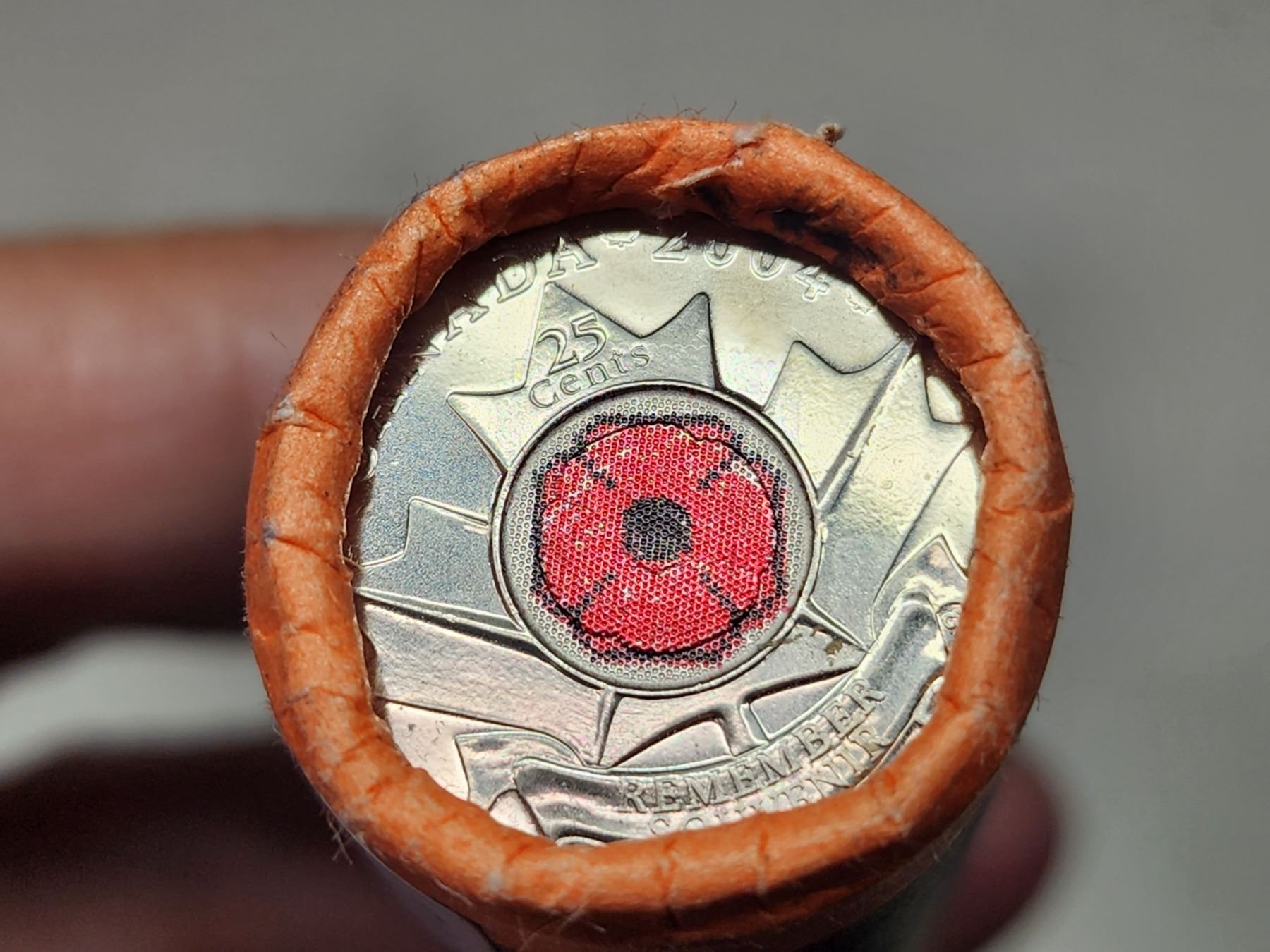 2004 RCM roll of "Lest we Forget" Canadian 25 cent coins - Mint, 10$ worth